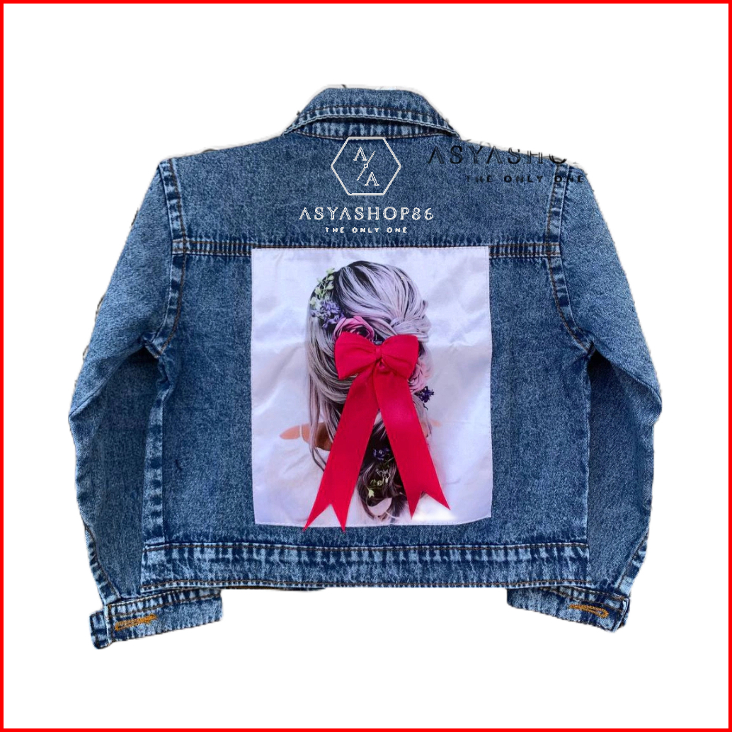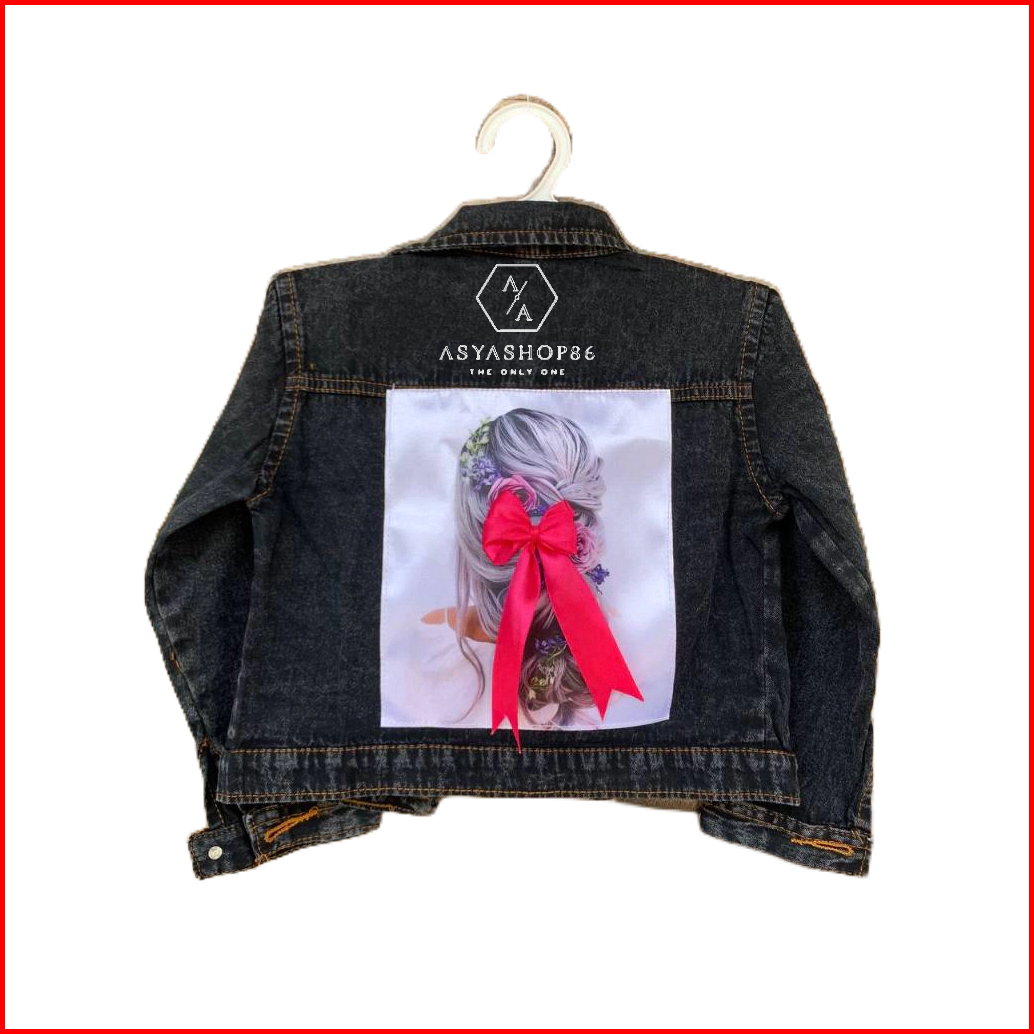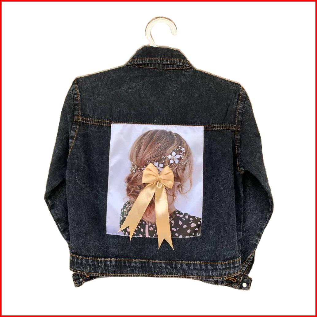 Jaket Jeans Anak Umur 1-8 Tahun Gambar Pita Belakang Warna Snow Wash Jacket Superhero - Bear