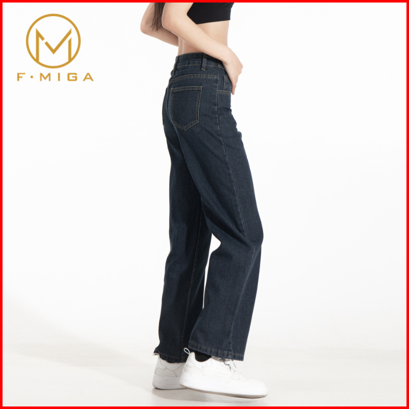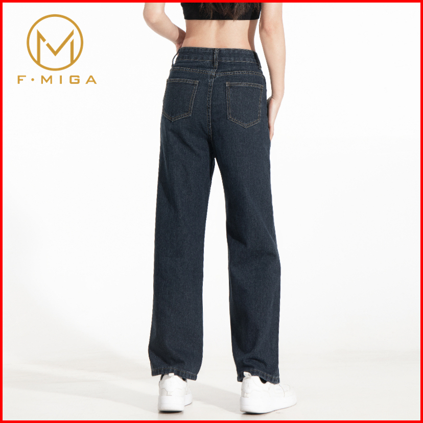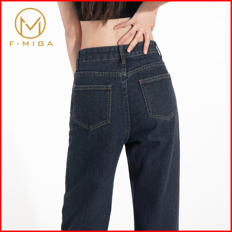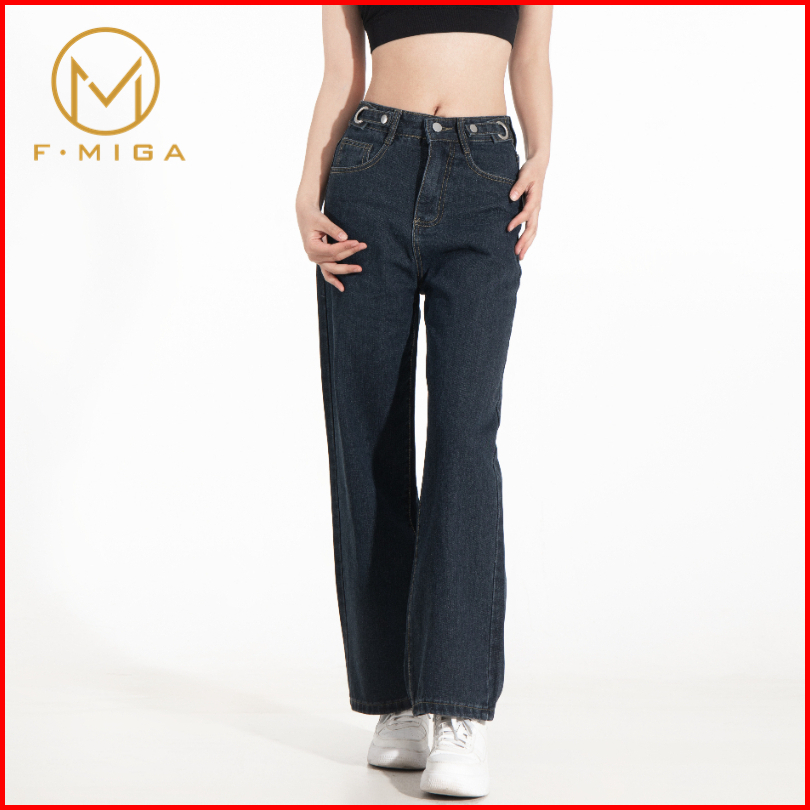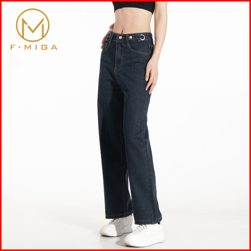 F Miga C42 Korean Celana Jeans Hig Hwaist Wanita Bagy Straight - Abu-abu Biru