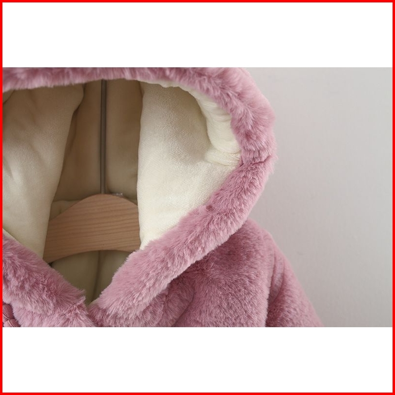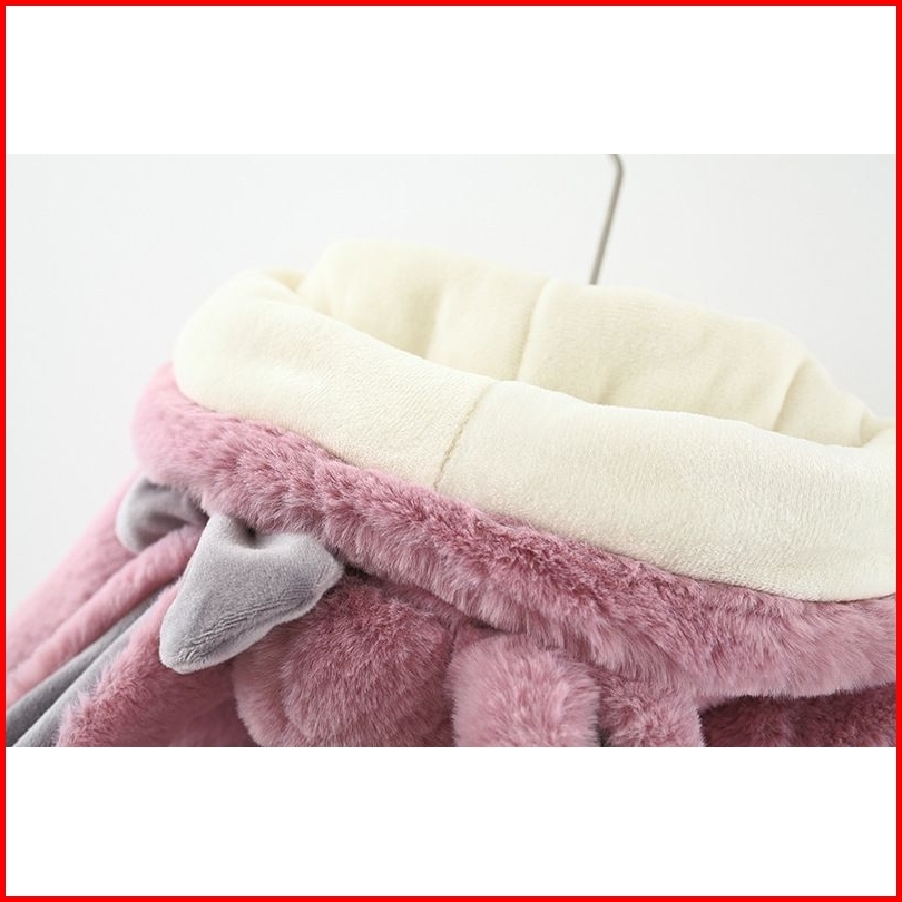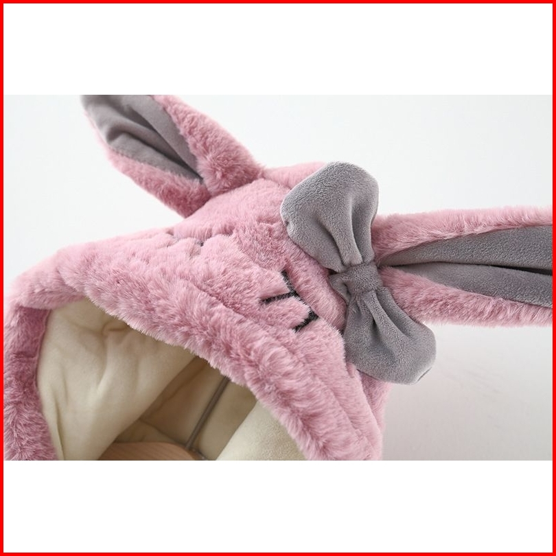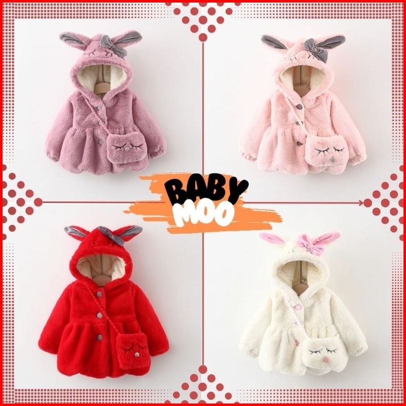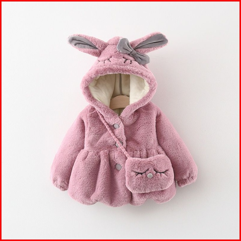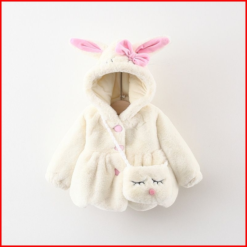 Jaket Bulu Anak Perempuan Telinga Kelinci Free Tas Mantel Hoodie Anak Bayi Bahan Lembut Berkualitas