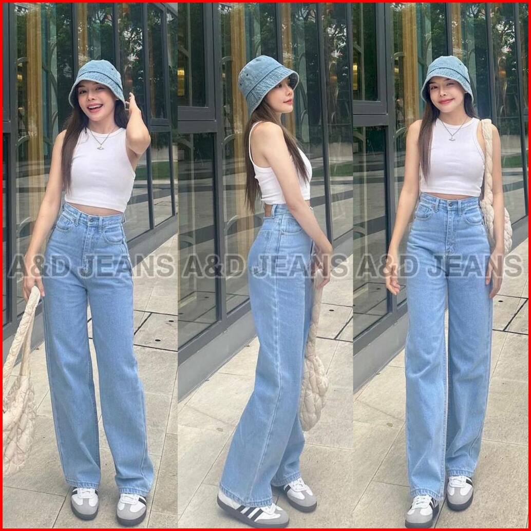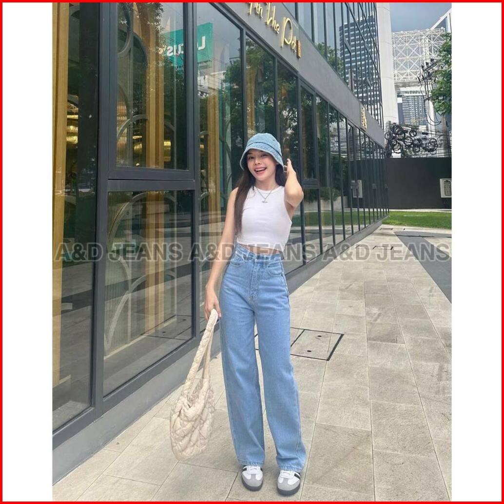 Highwaits Loose Adjustable Baggy Under Age Jeans Celana Jeans Wanita Kekinian Jeans Loose Straight