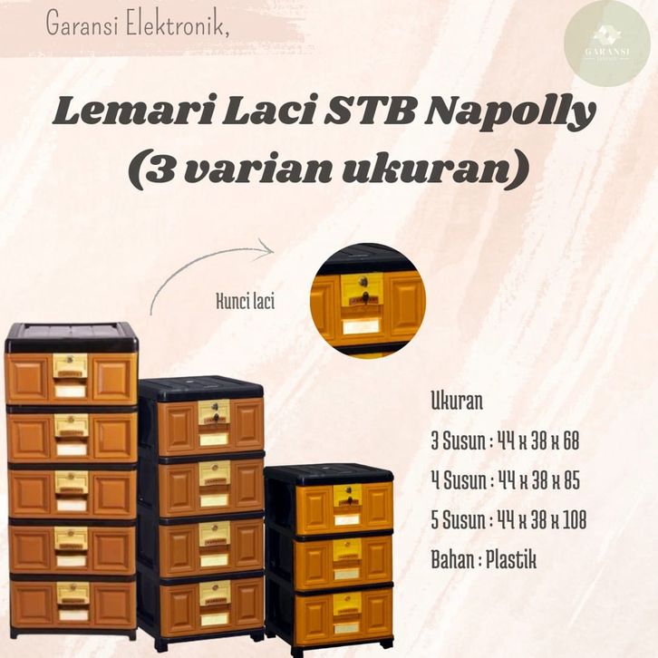 Lemari Plastik Lemari Pakaian Lemari Laci STB Napolly (3 Varian Ukuran) 3 Susun, 4 Susun Kunci Jumbo