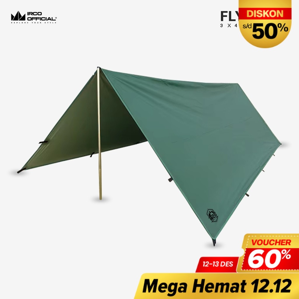 IRCO Flysheet Waterproof 3x4 Meter Tenda 4 Orang - Plysheet 3x4m Anti Air 16 Loop - Bivak Camping