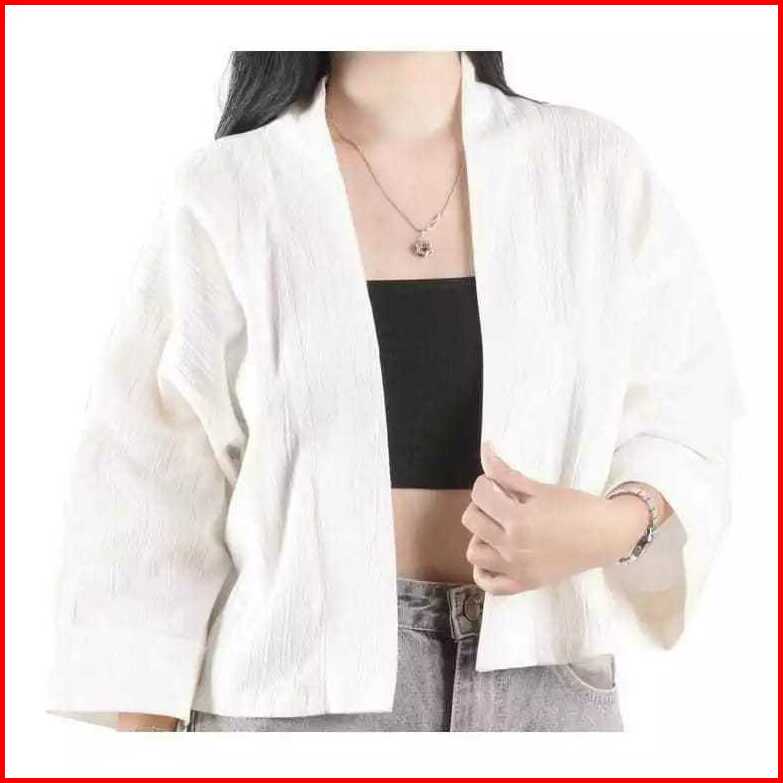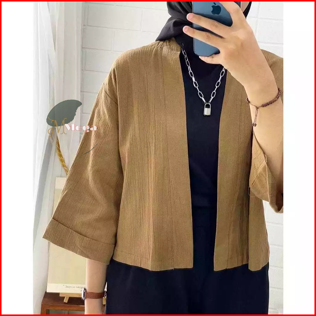 Belia Outer Wanita Crop Lengan 3 4 Outer Kiyowo Cardi Crop Linen Crinkle