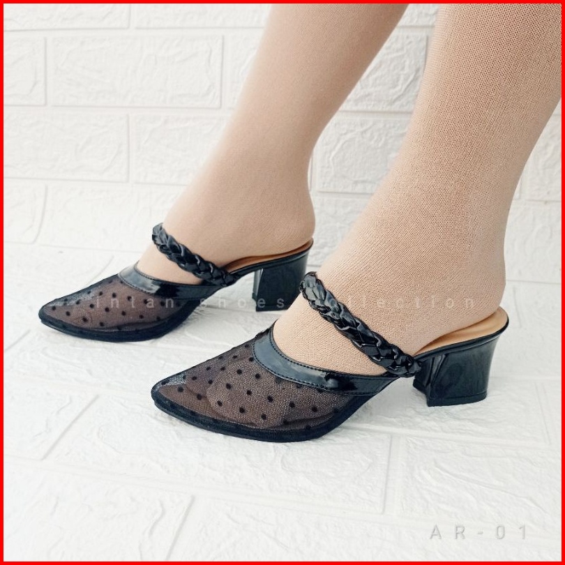 Sandal Weedges 5cm Ar-01 Sendal Brukat Wanita Terbaru Sandal Selop Bustong Anyam Slip On Sandal Pesta Wanita Terbaru Sen