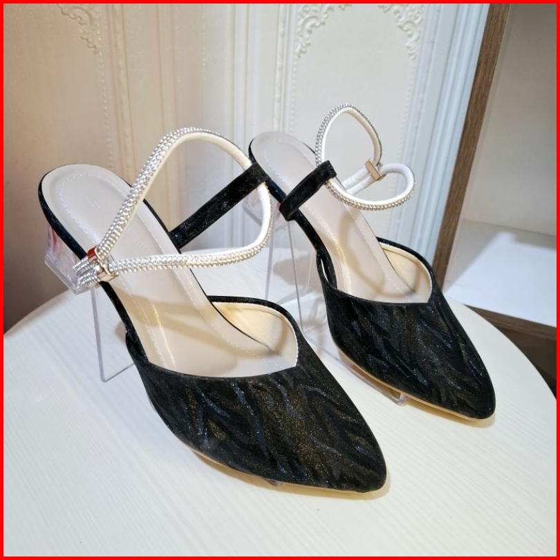 Series Bh 02 Sepatu Pesta Tali Jeli Permata Transparan Sandal Heels Wanita Hak Kaca 5 Cm