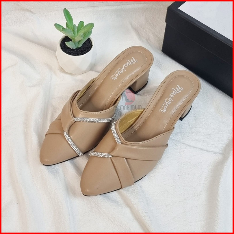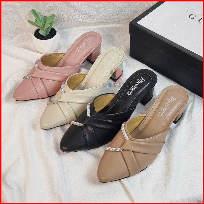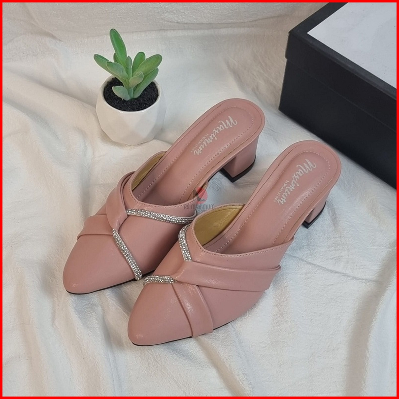 R9 Viona Mules Heels Wanita Sandal Wanita Hak 5 Cm Sandal