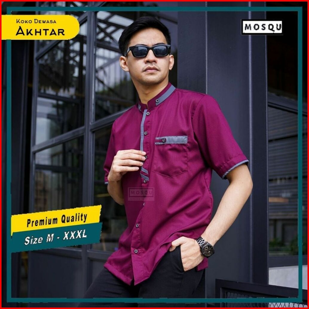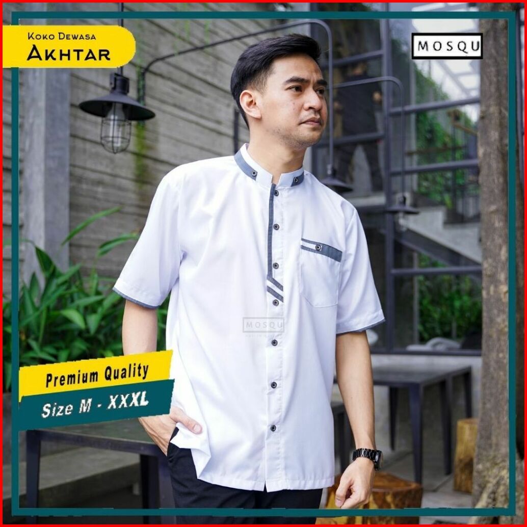 Baju Koko Pria Dewasa Lengan Pendek Bahan Toyobo Premium Model Akhtar Original By Mosqu