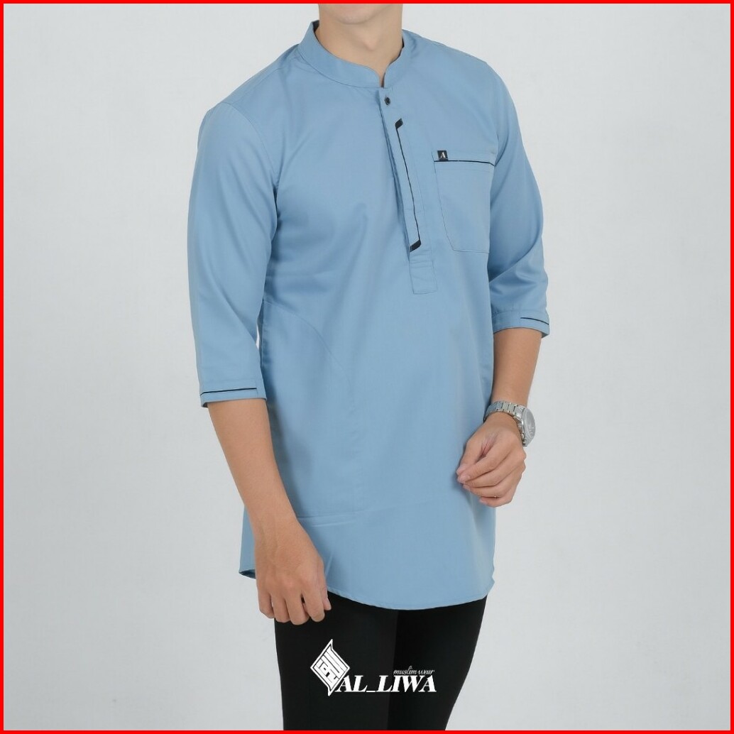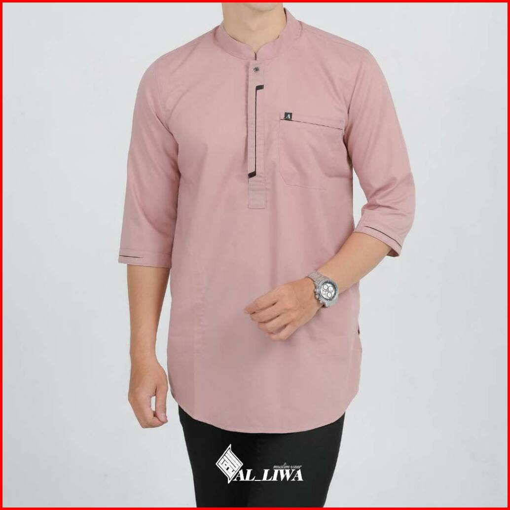 Baju Koko Kurta Pakistan Pakaian Muslim Pria Bahan Toyobo Warna Navy Hitam Olive Pink Abu Chocomilk