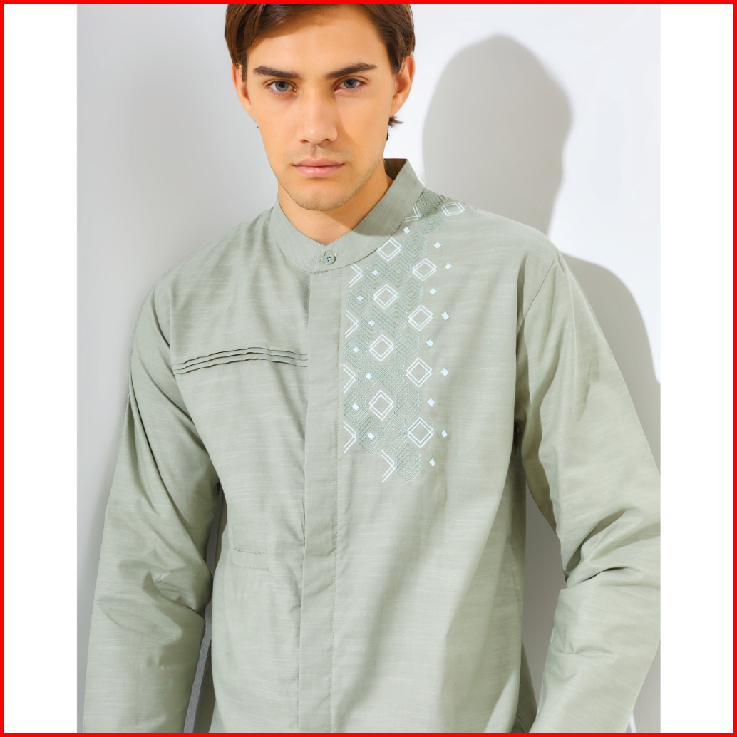 Hafiz - Baju Koko Bordir Pria Lengan Panjang Sage Green - Koko Long Sleeves Sage Green - Loa Studios