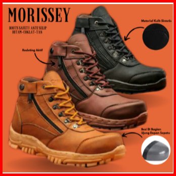 Sepatu Lapangan Morisey Safety Boots Ujung Besi Sepatu Pria Keren Adventure Tracking Hiking Outdoor Gunung