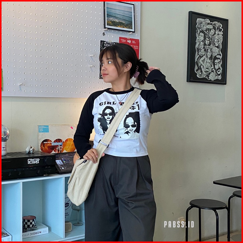 Jennie Baby Tee Raglan Longsleeve Crop Tee Crop Top Kaos Wanita