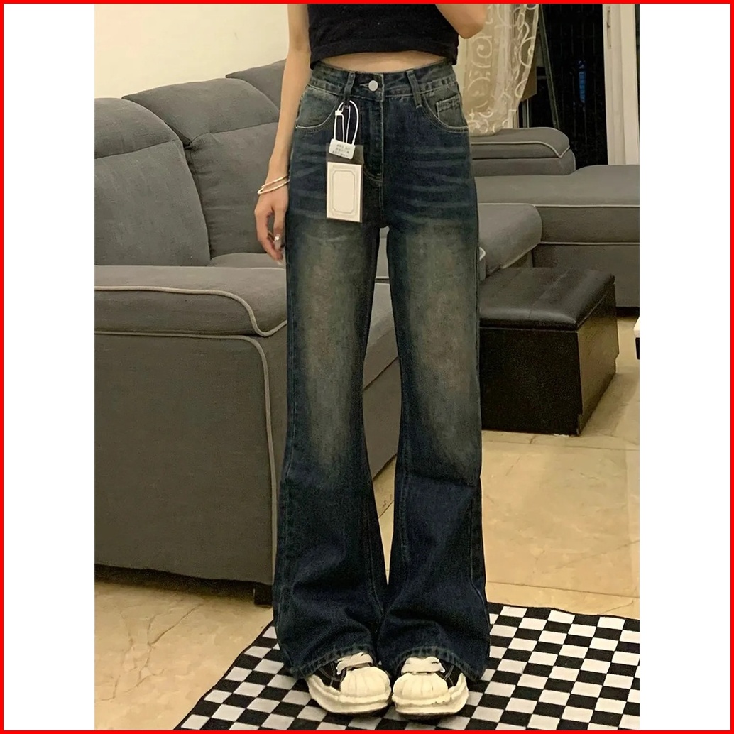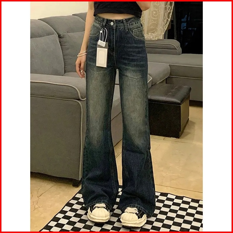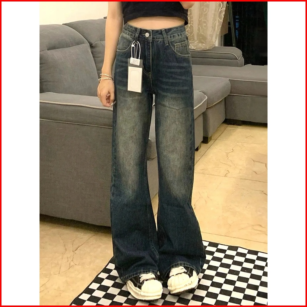 Celana Jeans Wanita Kaki Lebar Longgar Pinggang Tinggi Baru