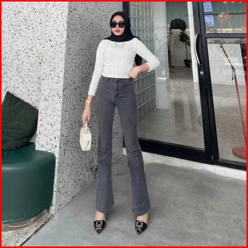 Celana Cutbray Jeans Wanita - Celana Cutbray Hightwaist Streach Kekinian - Cutbray Flared - Streetch Premium