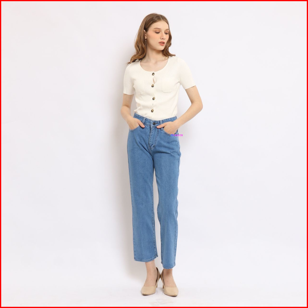 Nuber Baggy Highwaist Jeans Wide Cintia Blue Navy Hitam Ivory Wheat Cream All Snow