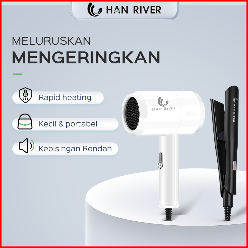 Han River Hair Dryer 600w Pengering Rambut Mini Catok Rambut Paket Hemat Perawatan Rambut 2 In 1