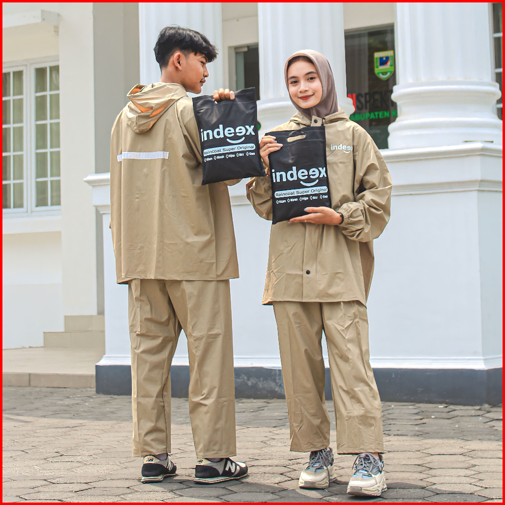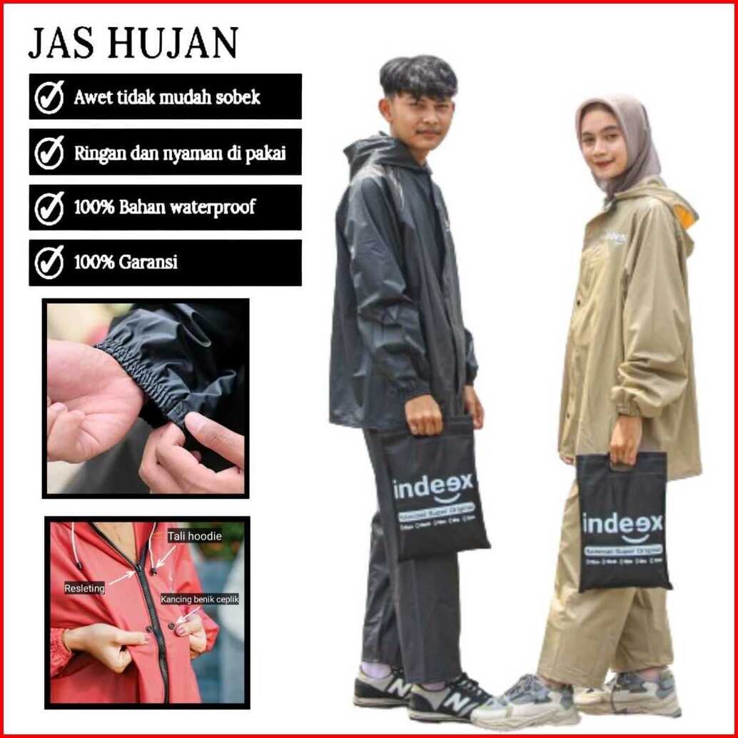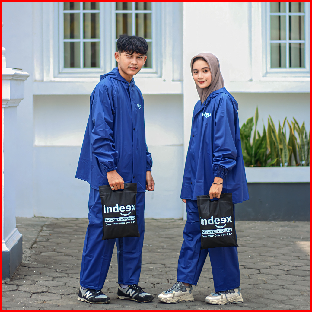 Mantel Hujan Indeex Original - Setelan Baju Celana - Bahan Pvc Karet Elastis Kuat Tebal Untuk Pria Dan Wanita