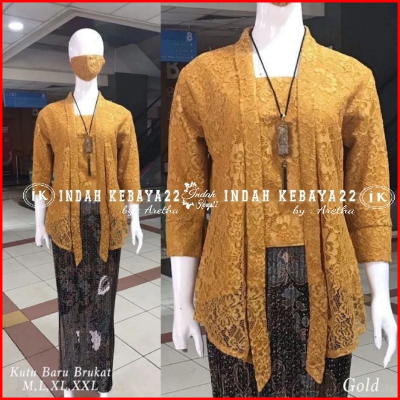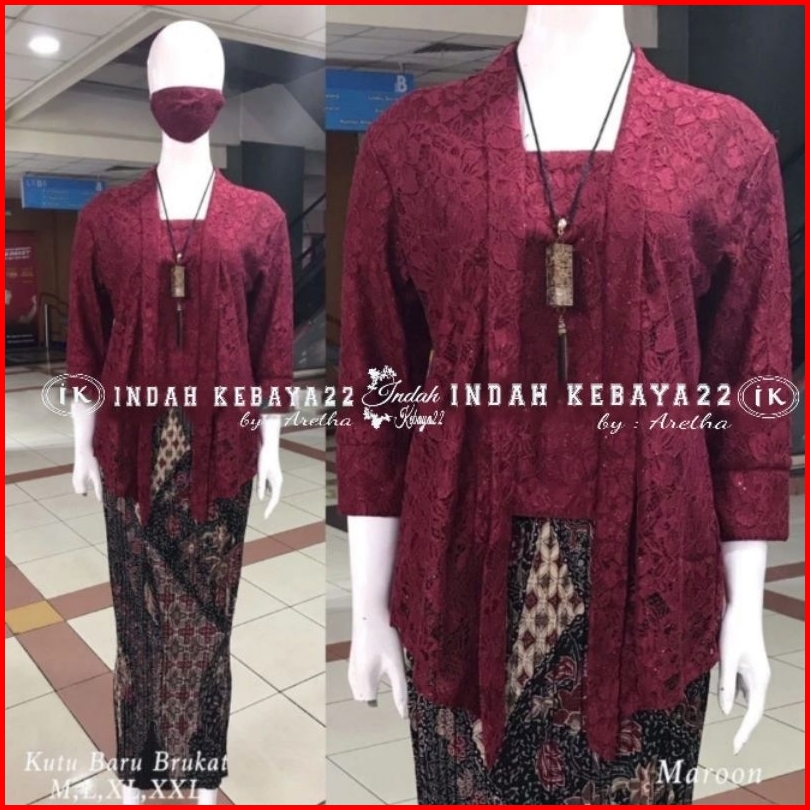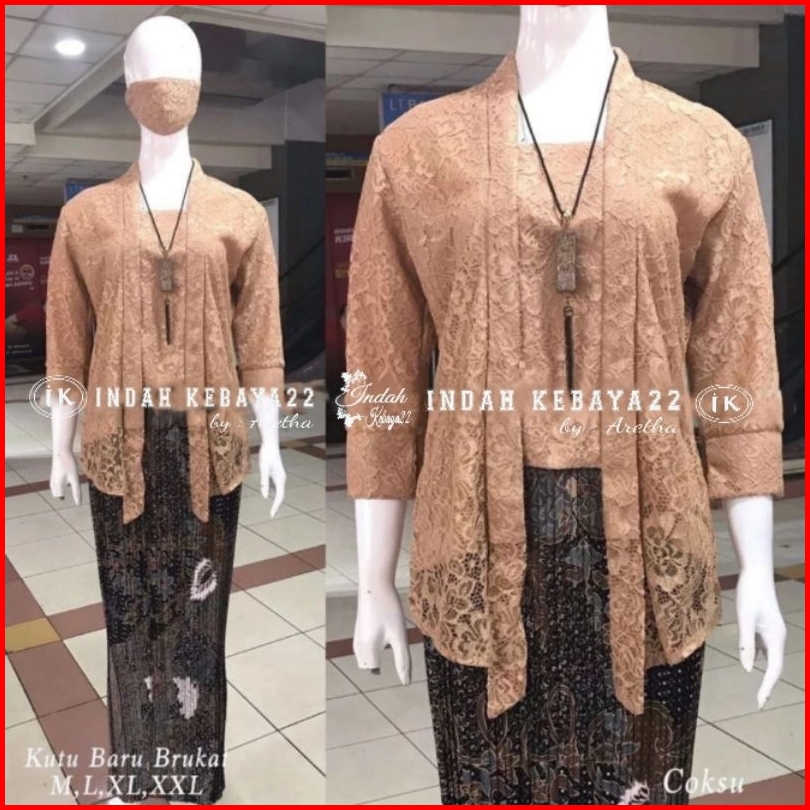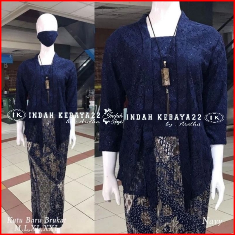 Indah Kebaya22 - Set Kebaya Kutubaru Modern Brokat Tebal Setelan Baju Kebaya Wanita Kondangan Lamaran Pesta Wisuda Karti