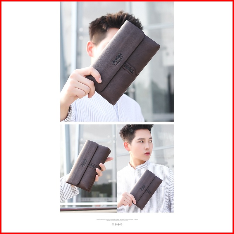 Jp080 - Handbag Pria Wanita Tas Tangan Jeep Premium Kulit Dompet Clutch Leather Hand Bag Distro Pesta Branded Import Cow