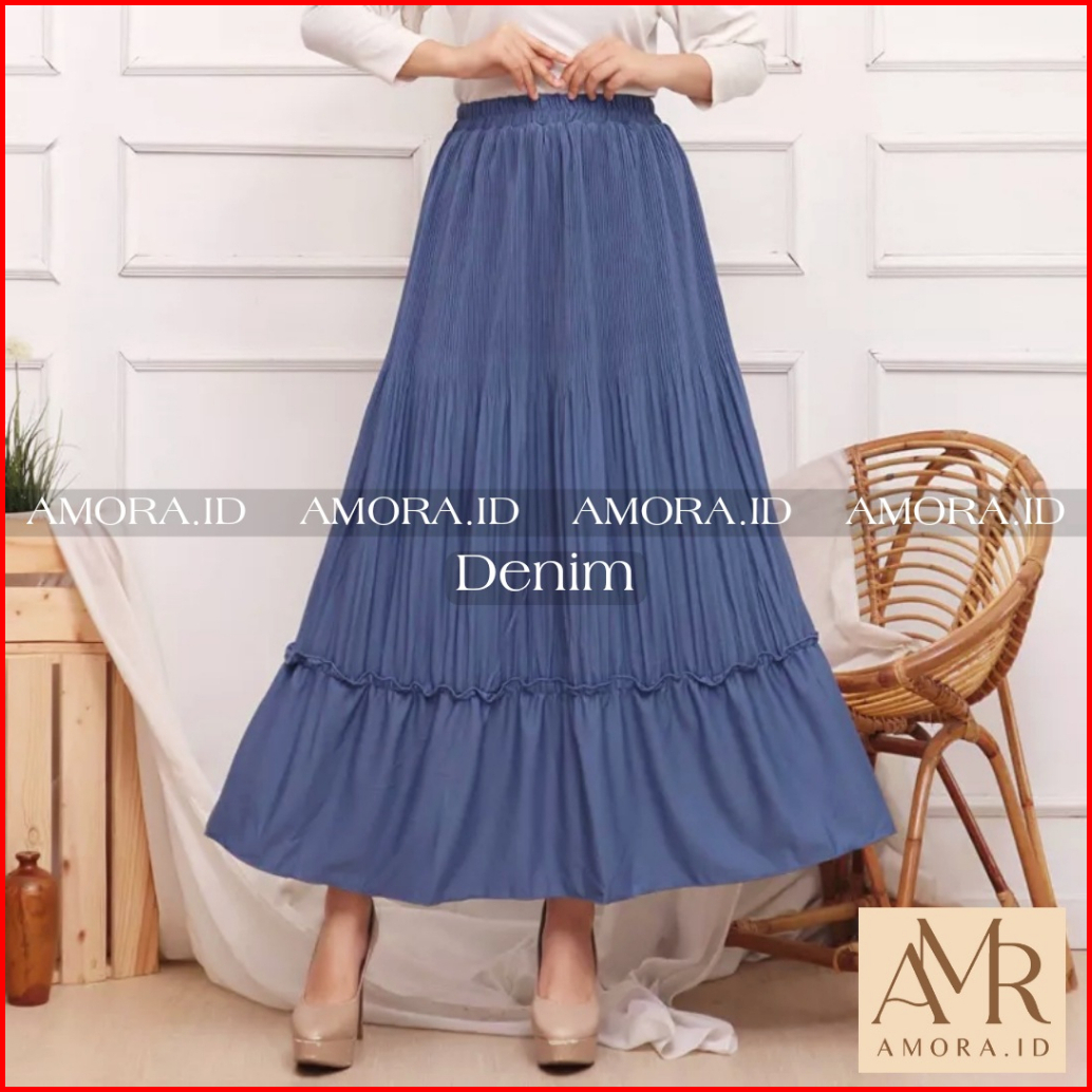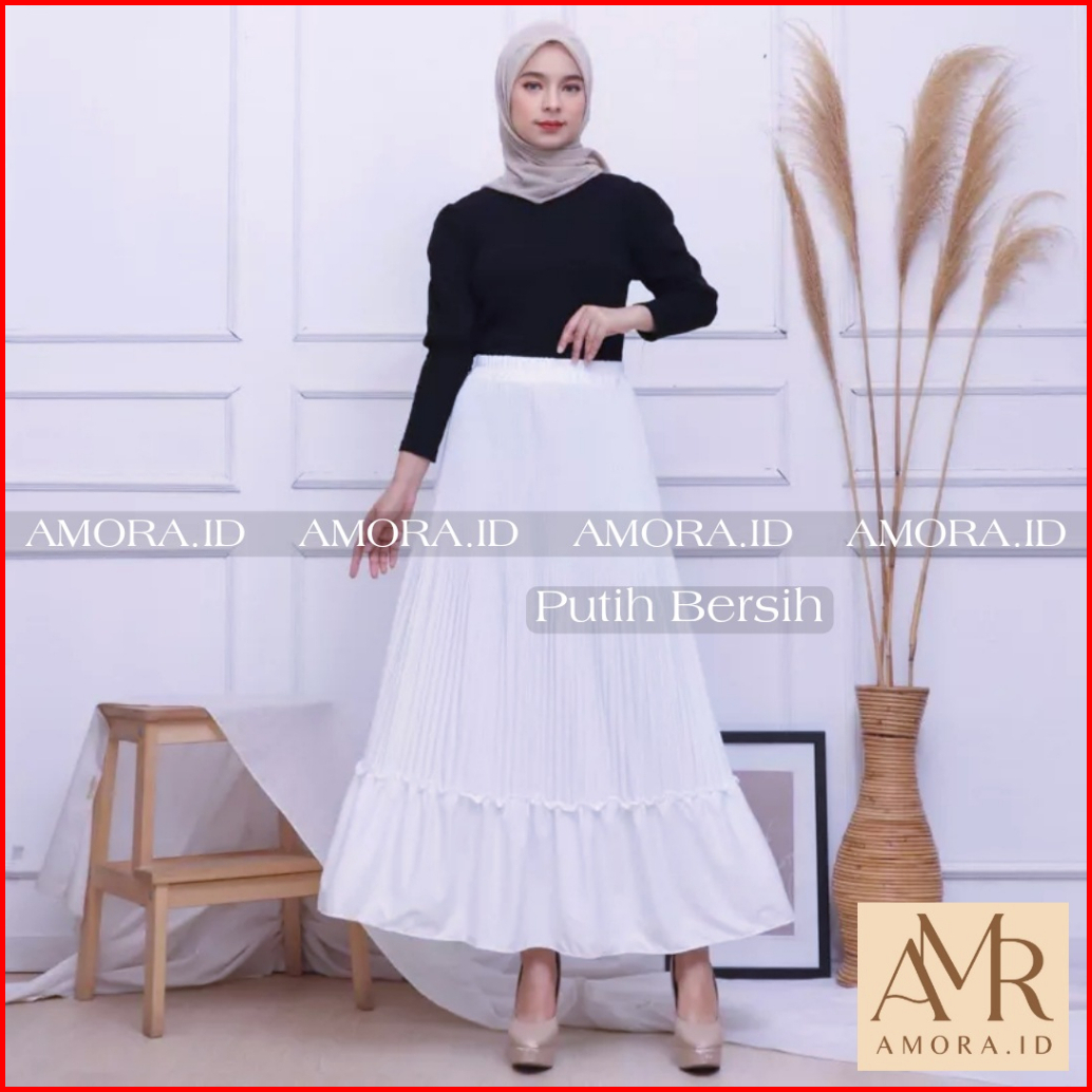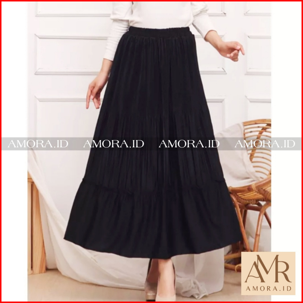 Rok Ruffle Plisket Panjang Muslim Model Susun Lidi Polos Premium