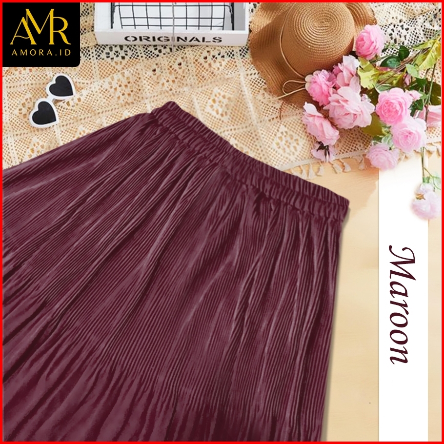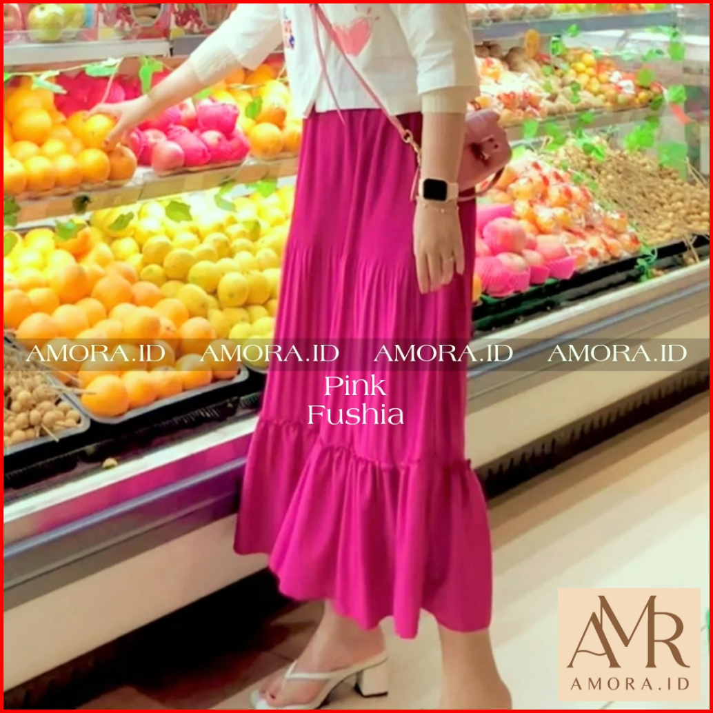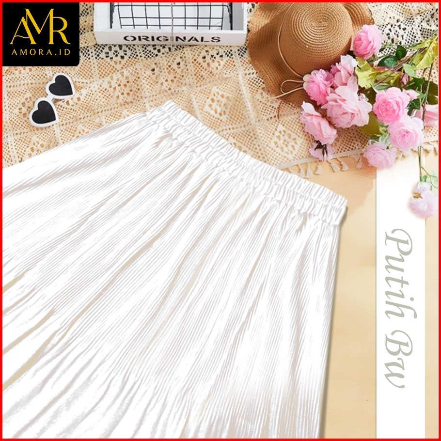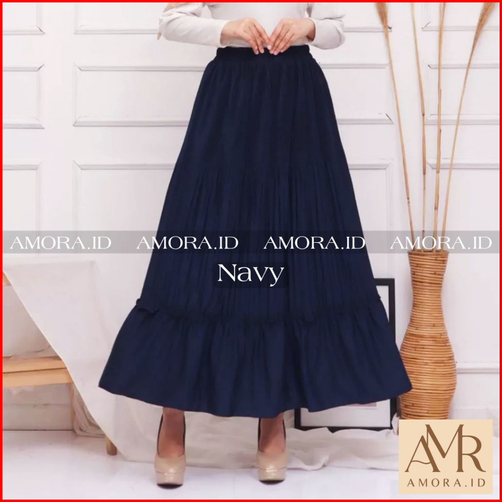 Rok Ruffle Plisket Panjang Muslim Model Susun Lidi Polos Premium