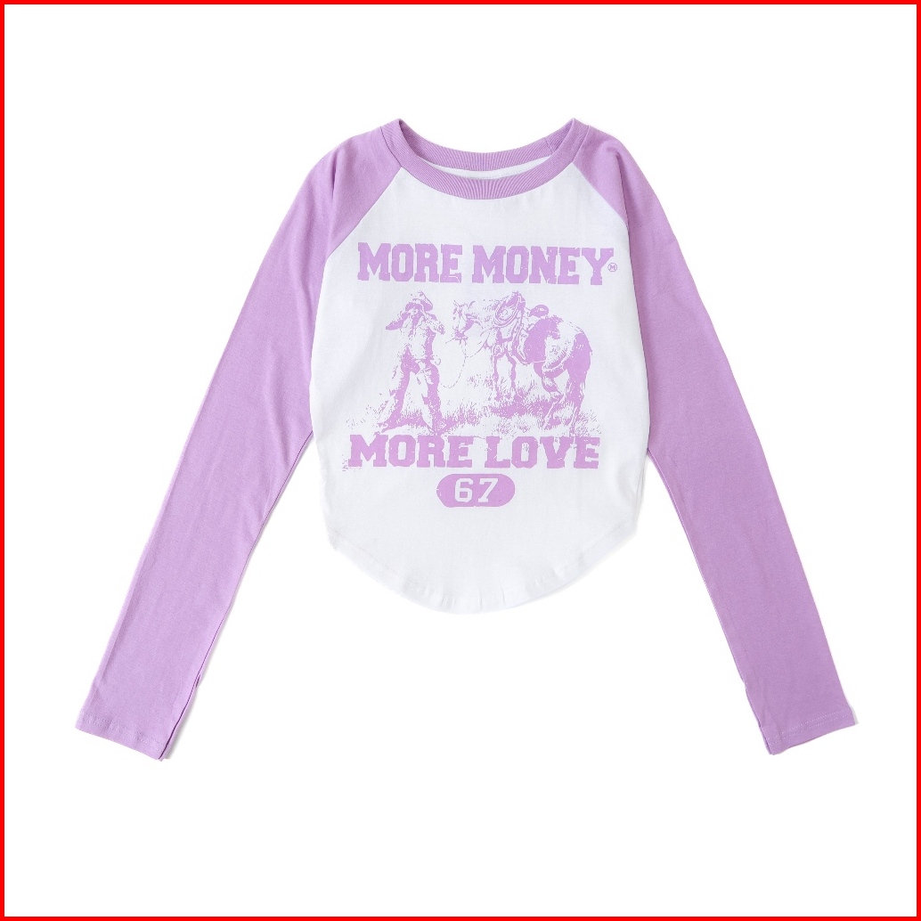 Nomolu - Crop Top Long Sleeve Kaos Wanita Vol.016 More Money