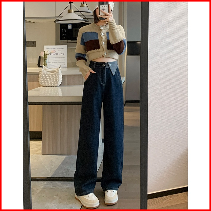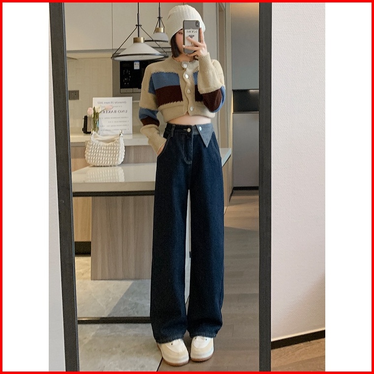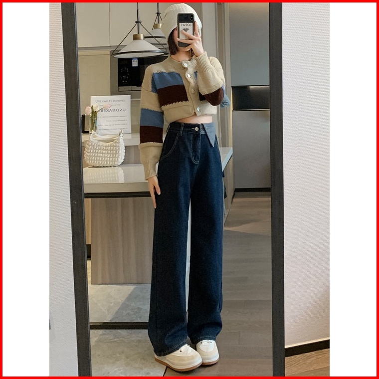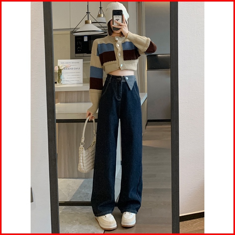 Celana Jeans Highwaist Wanita Korea Style Import Straight Celana Kulot Baggy Vintage Celana Kulot Kancing