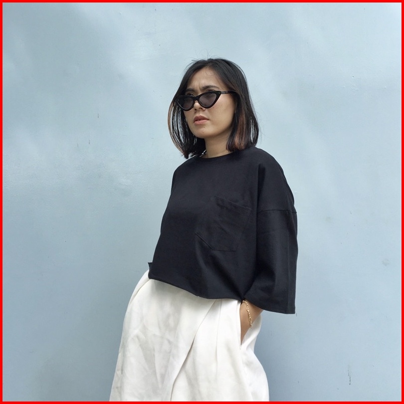 Kaos Crop Tee Oversize Wanita Hijab Tangan 3 4 Kaos Crop Top Unfinished Polos Cotton Combed 20s