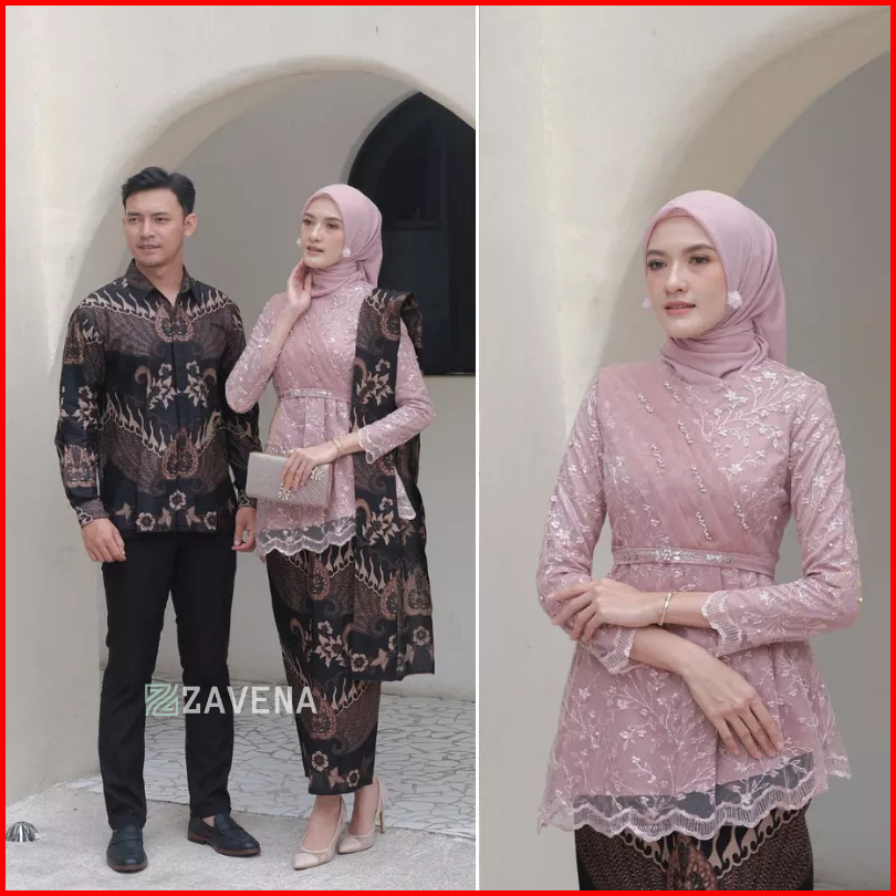 Batik Kebaya Couple Zavina Kebaya Wisuda Set Tunik Lamaran Tunangan Batik Baju Couple Kondangan Terbaru 2023