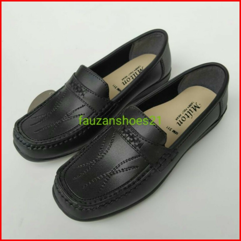 Sepatu Pantofel Wanita Formal.milton Mm 311 Hitam Putih