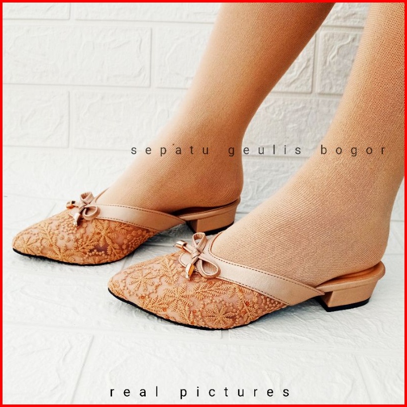 Sandal Brukat Wedges Wanita 3cm Terbaru Sepatu Bustong Brukat Wanita Remaja Sendal Bustong Pesta Pernikahan Wanita Sanda