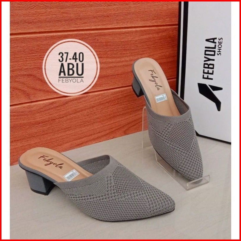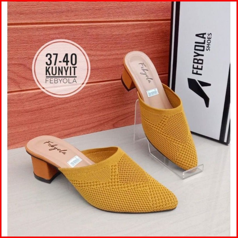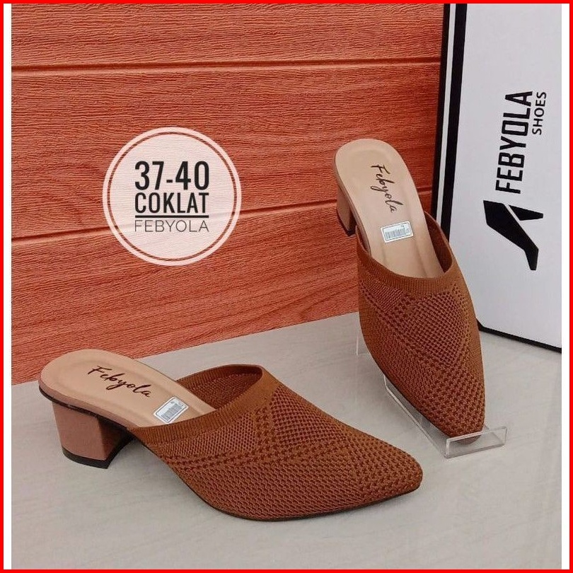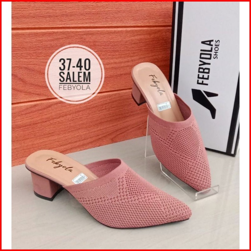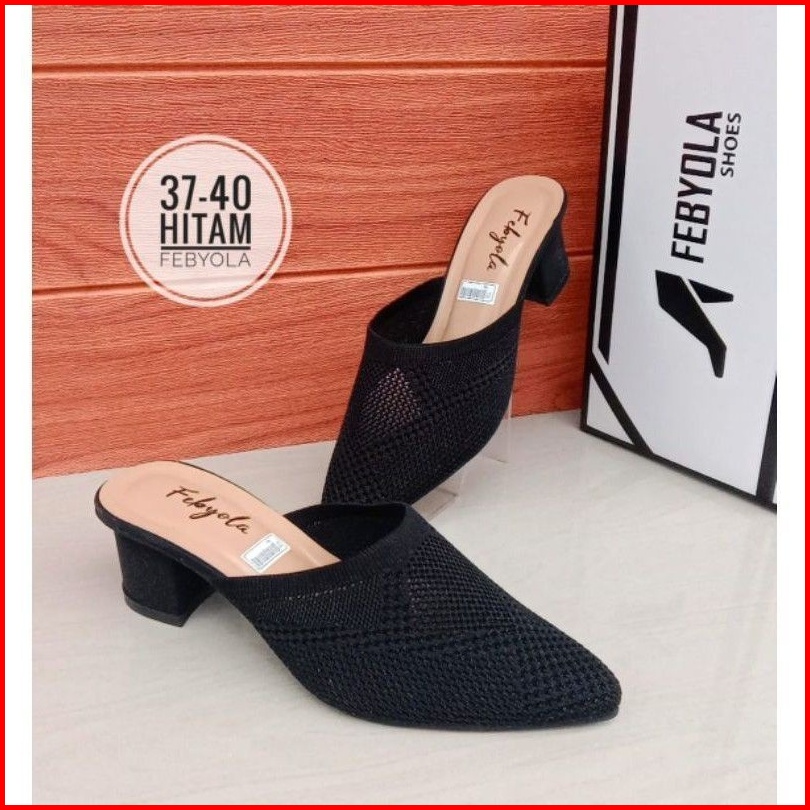 Sepatu Selop Sorong Hak Tahu Rajut 5 Cm