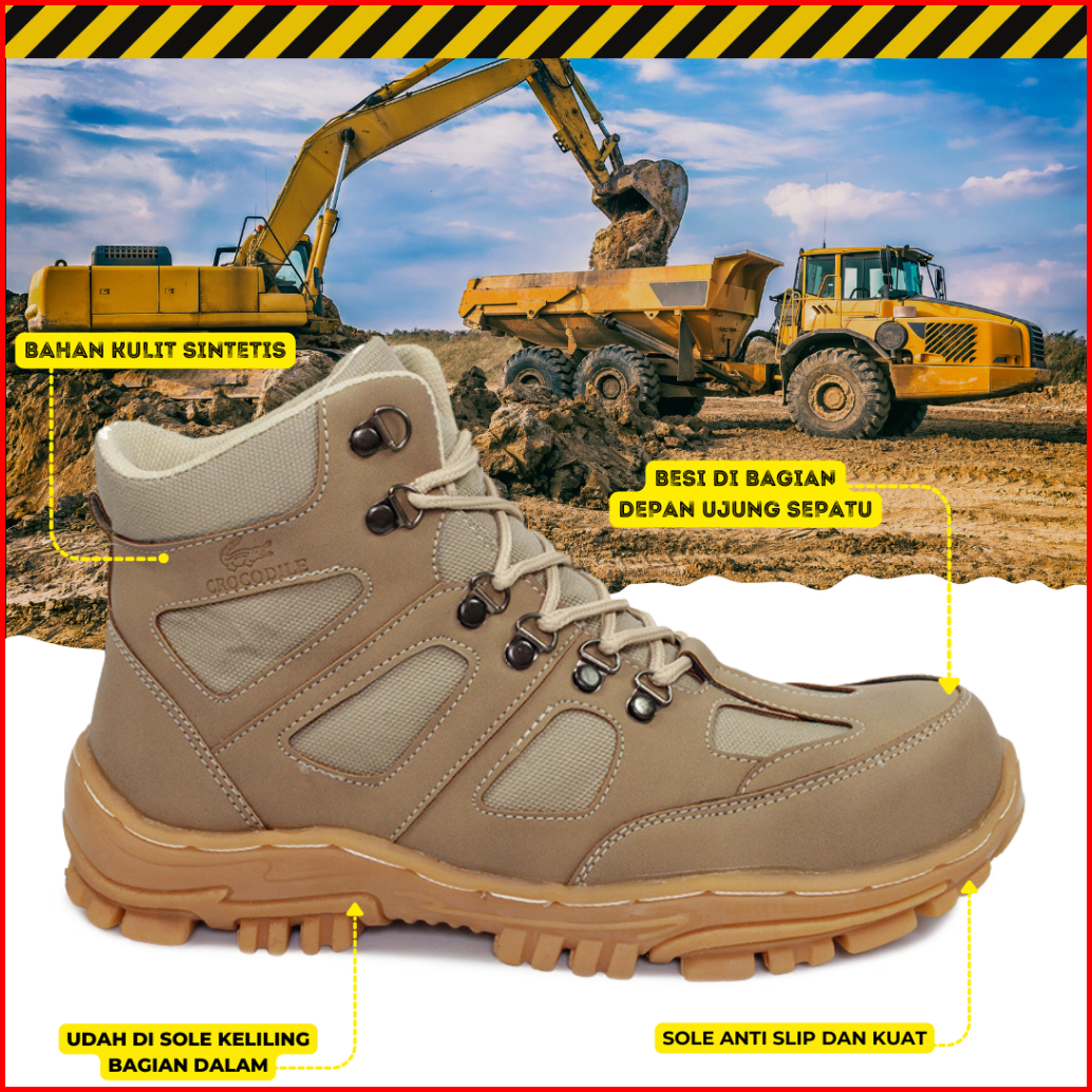 Sepatu Safety Pria Boots Proyek Ujung Besi - Septy Shoes Boot - Septi Kerja Lapangan Kulit Sintetis Tali - Sepatu Kerja
