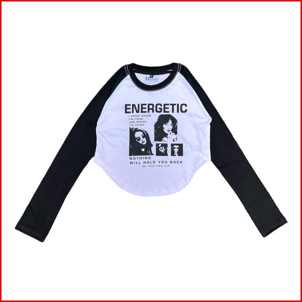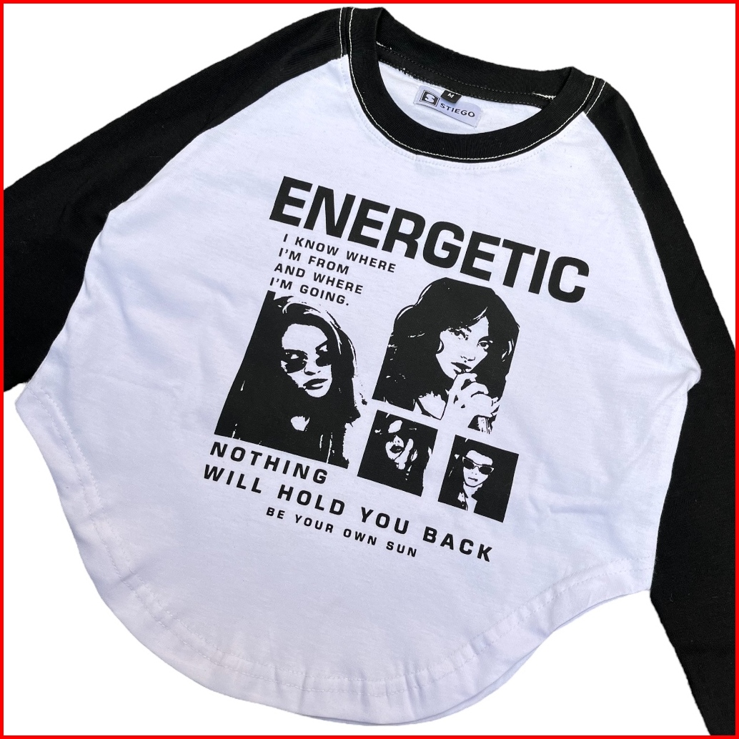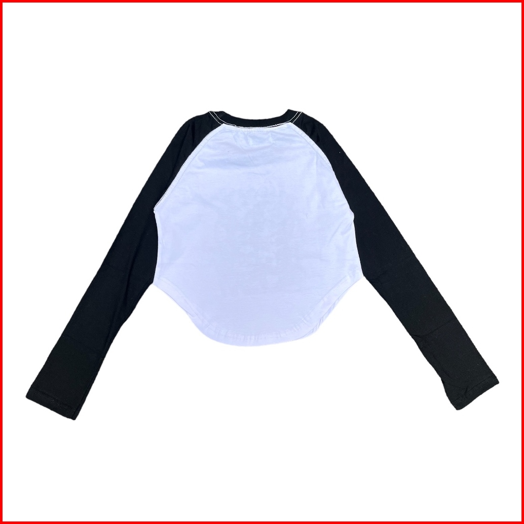 Stiego Endearing Girl Crop Top Raglan Lengan Panjang Kaos Lengan Panjang Wanita Kekinian Cropped Top Korean Top