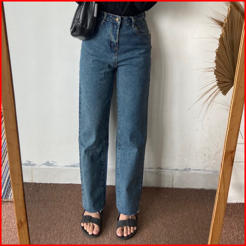 Dwistuff Celana Loose Kulot Korean Baggy Boyfriend Cargo Jeans Highwaist