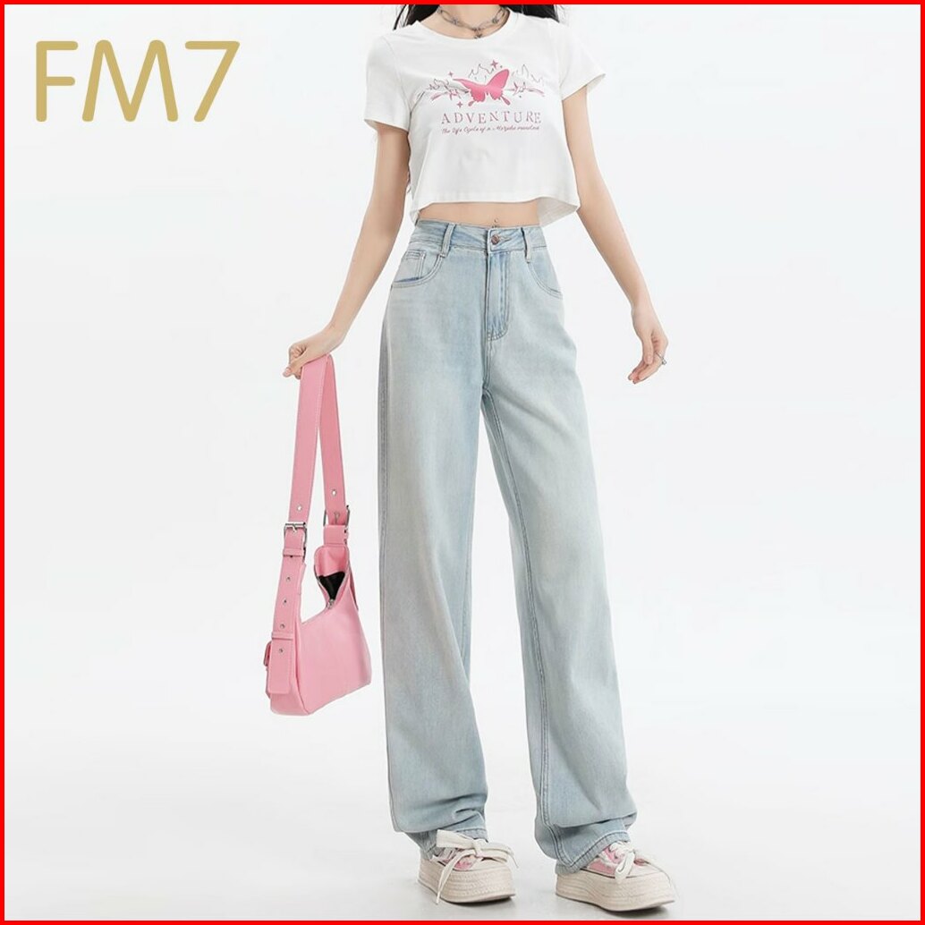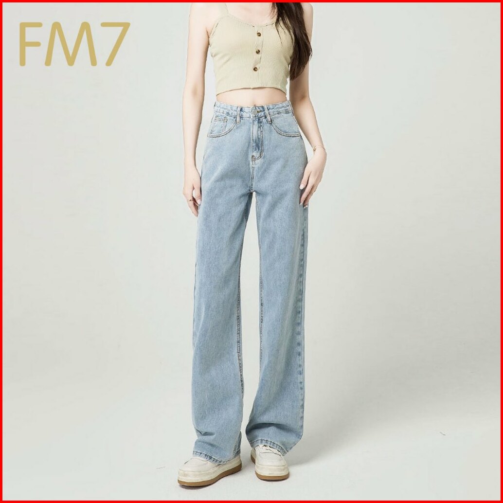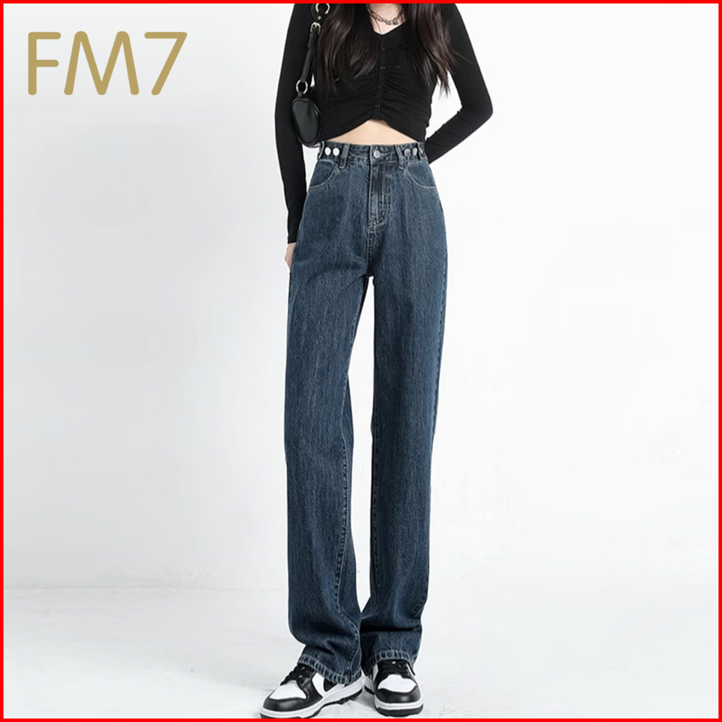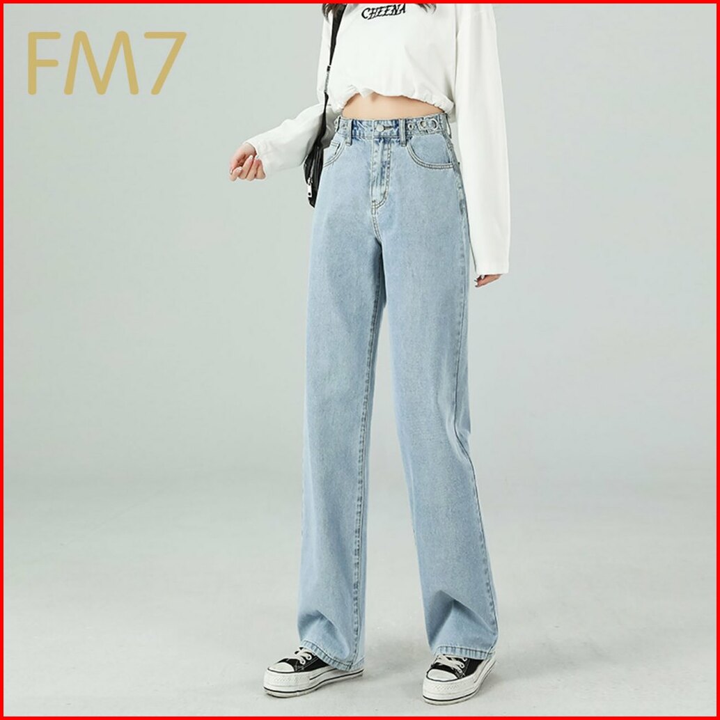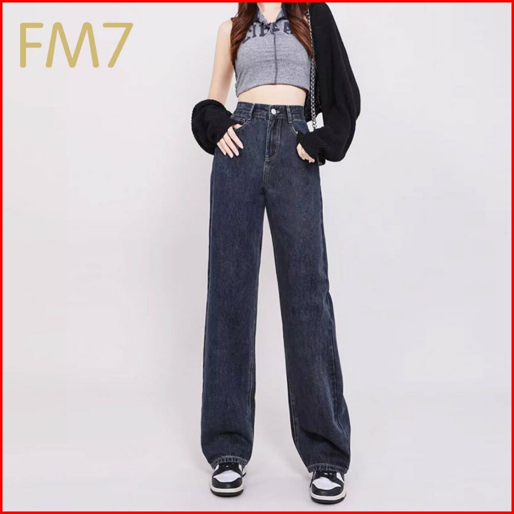 Fm7 L5 Korean Style Straight Bagy Jeans Wanita High Waist - Biru