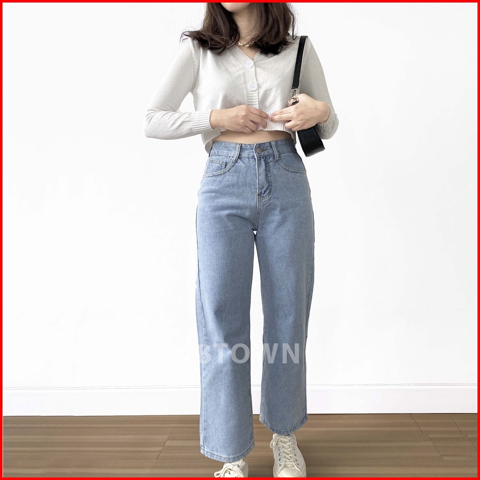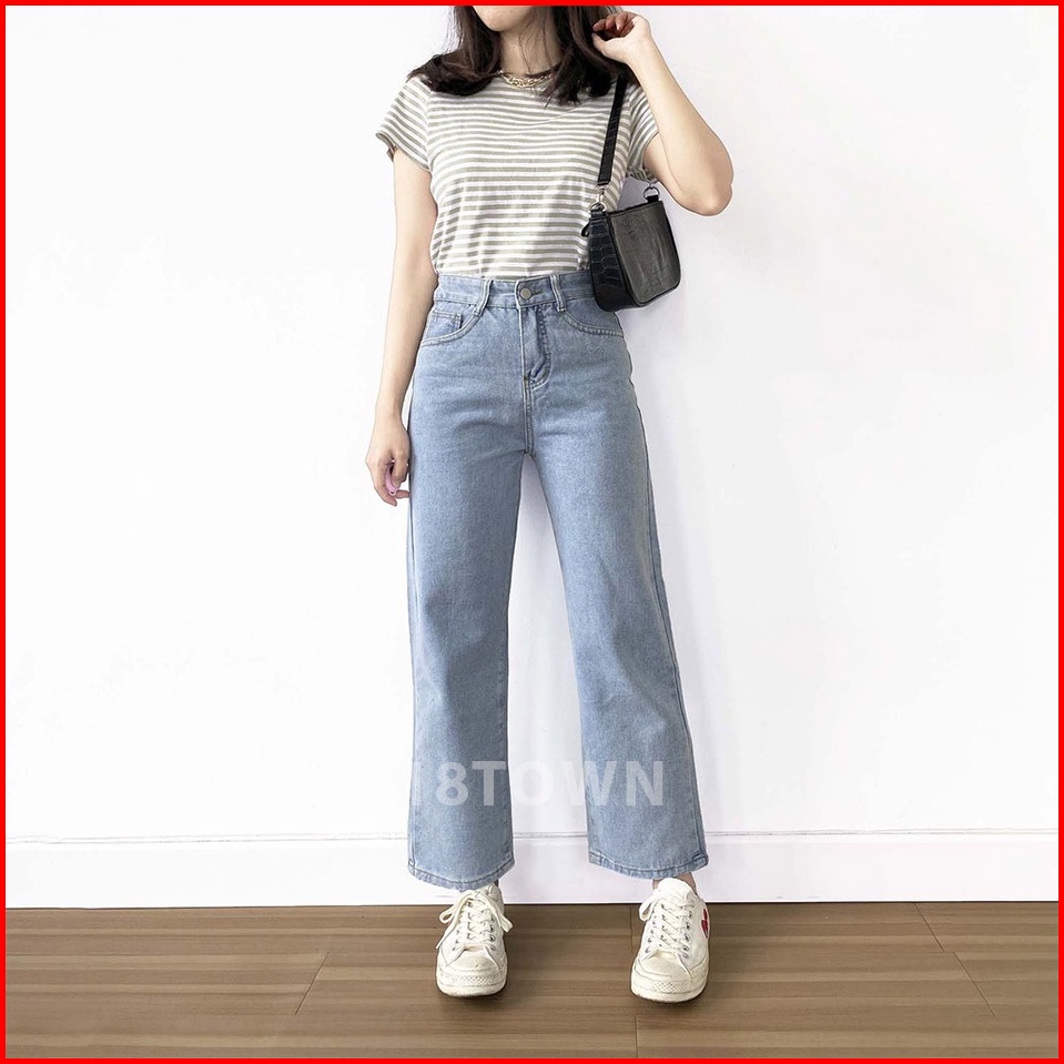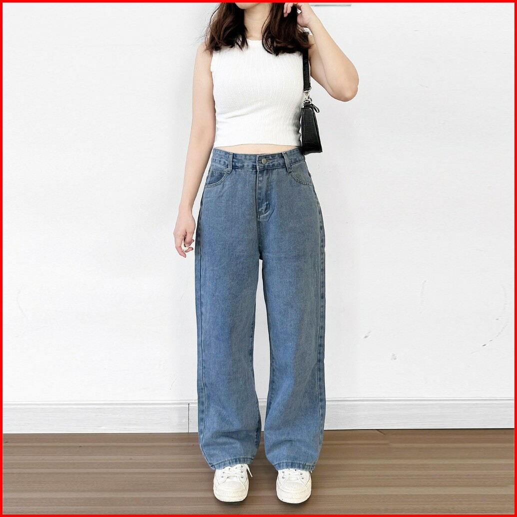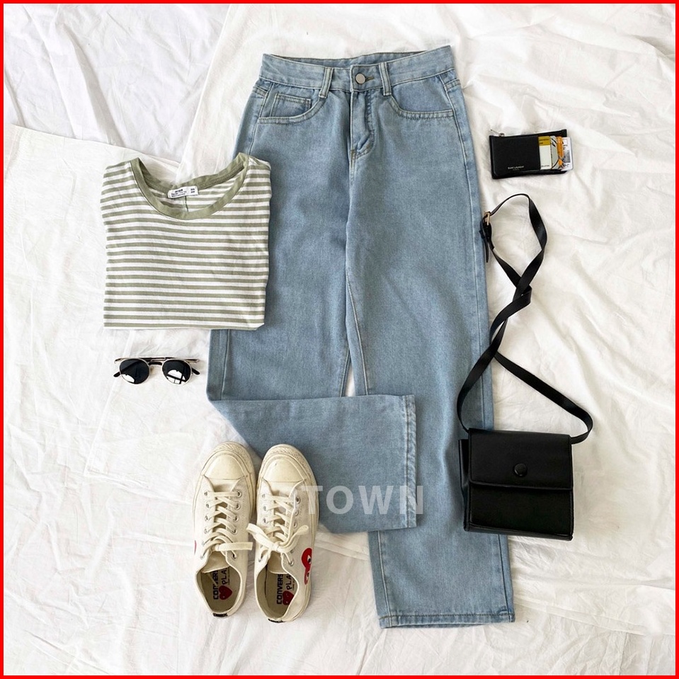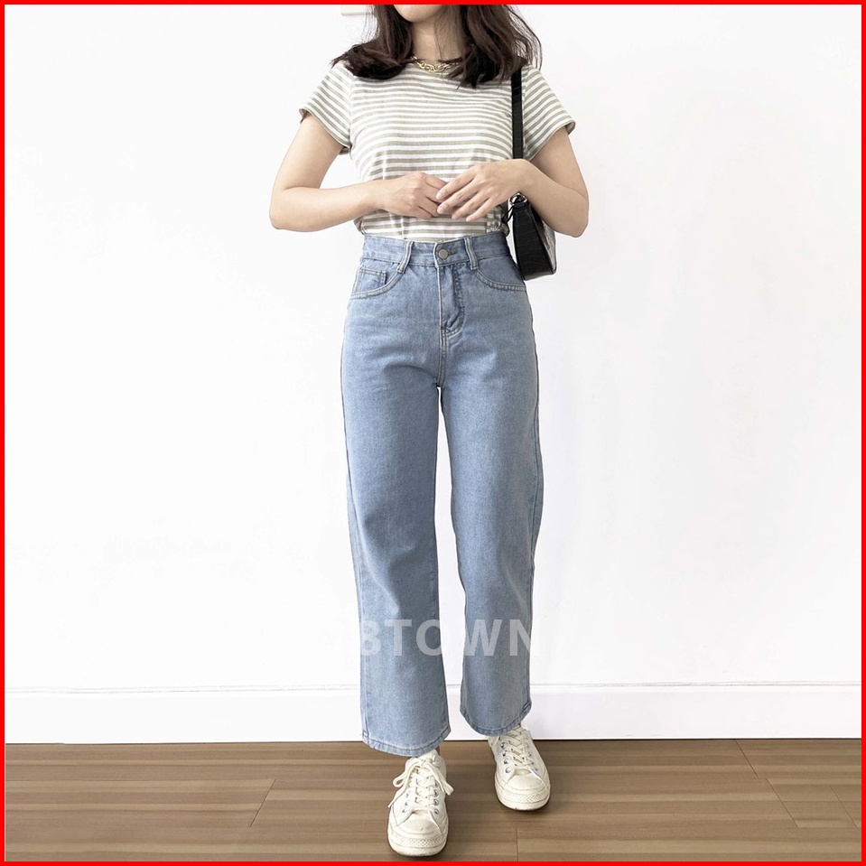 T71 18town Mom Jeans Celana Jeans Wanita Korea Panjang High Waist Gaya Korea Murah Dan Nyaman