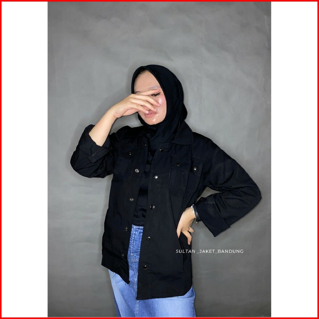 Jaket Semi Parka Trucker Jacket Wanita Bahan Baby Canvas Size M-xl Dewasa Anak