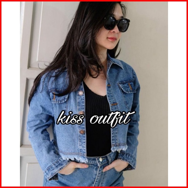 Jaket Jeans Crop Wanita Cewek Cewe Rawis Jaket Jins Denim Jaket Murah Terbaru Terlaris Jaket