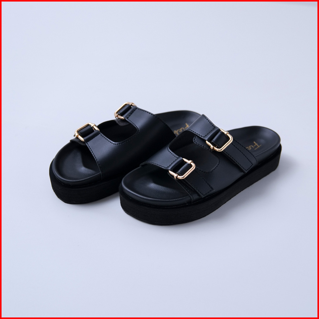 Fichy - Odete Black - Free Dustbag Sandal Wanita Sandal Platfrom Sandal Wanita Studs Slip On Sandal