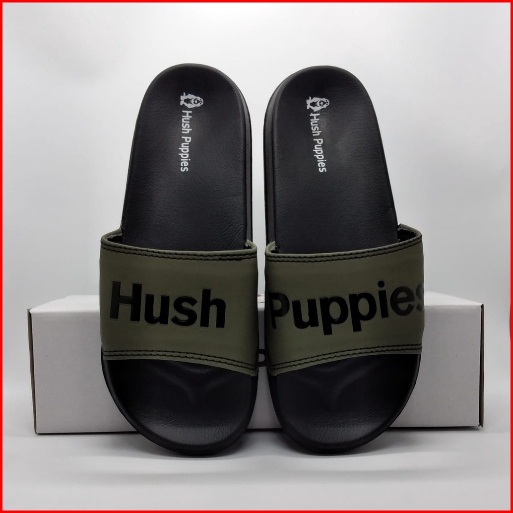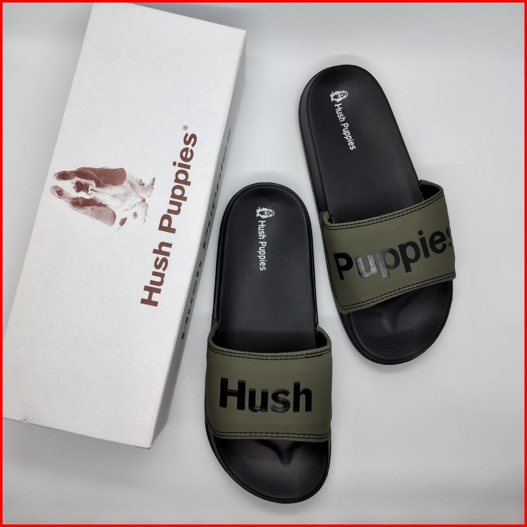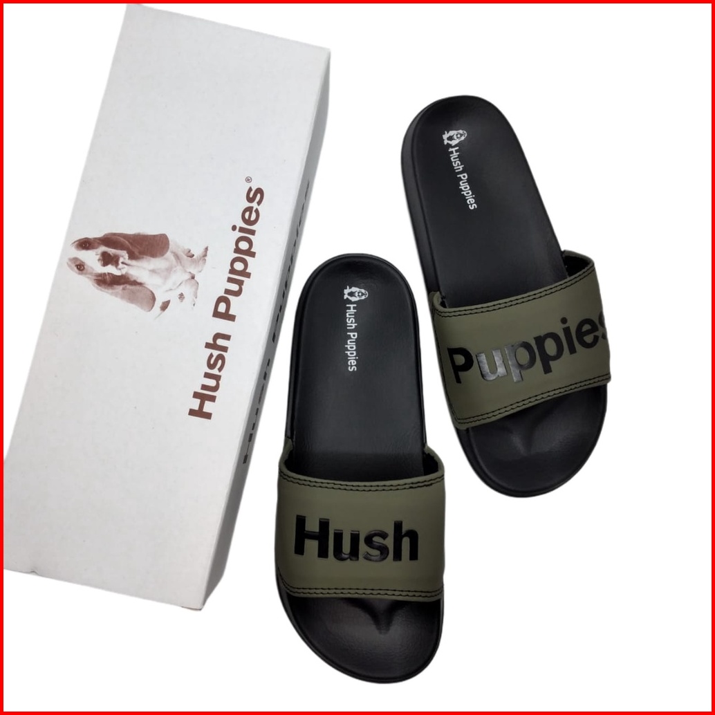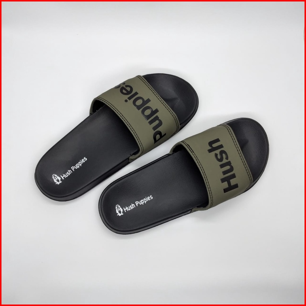 Hush Puppies Sandal Selop Pria Original Premium Hitam Army Slipper Slide Casual Dewasa Kekinian Size 39-43