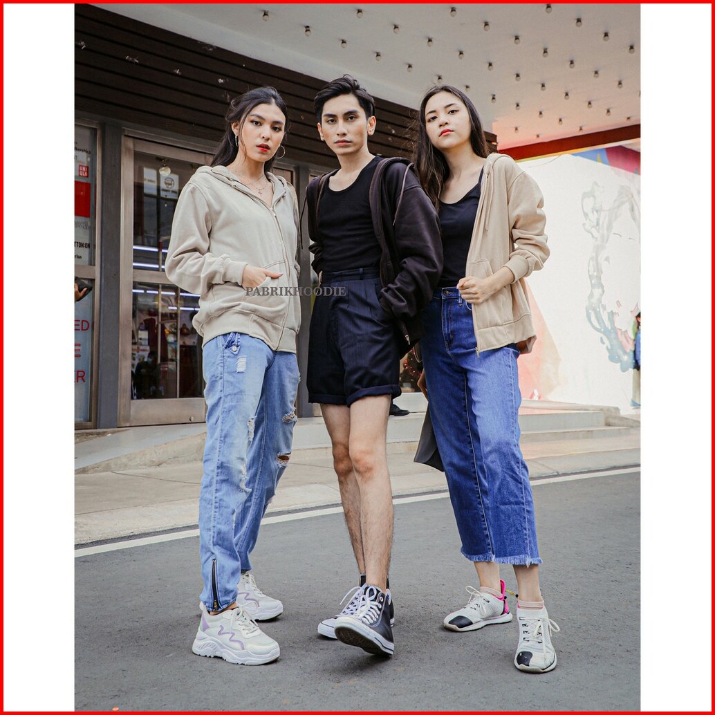 Pabrikhoodie - Jaket Hoodie Zipper Beige Polos Pria Wanita M - Xxxl