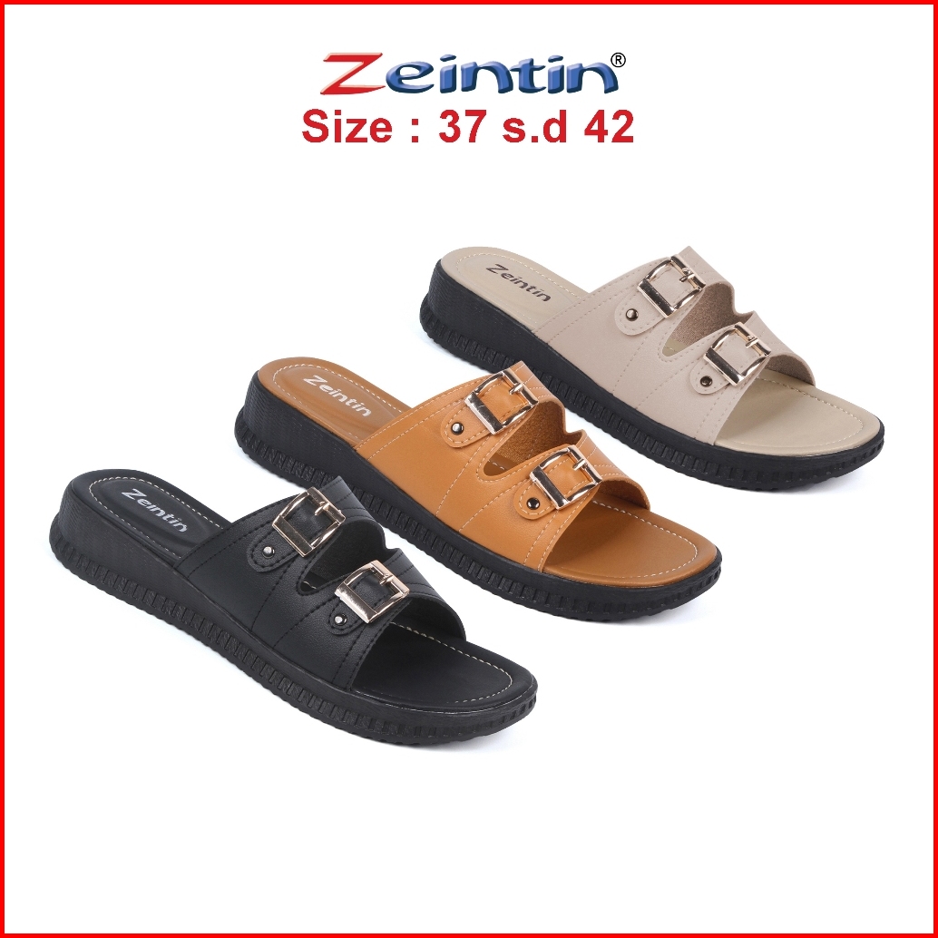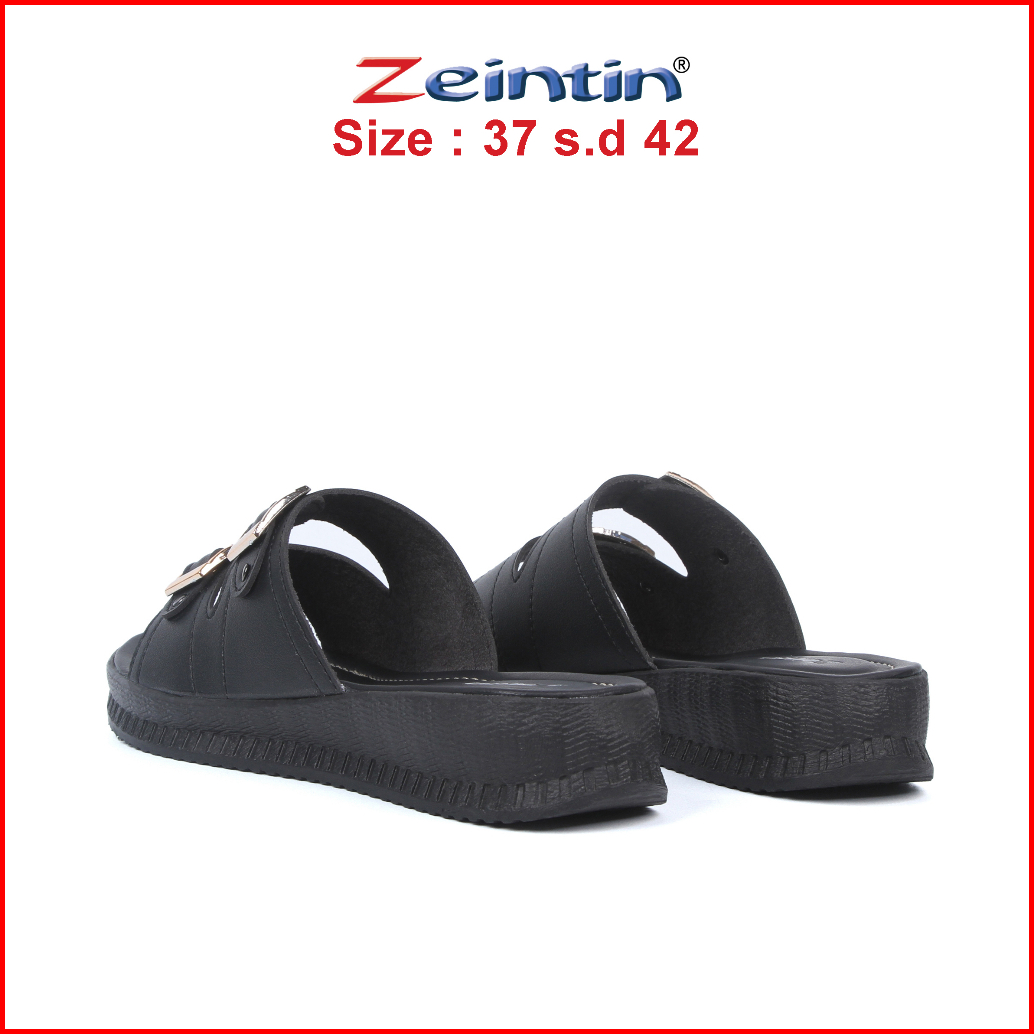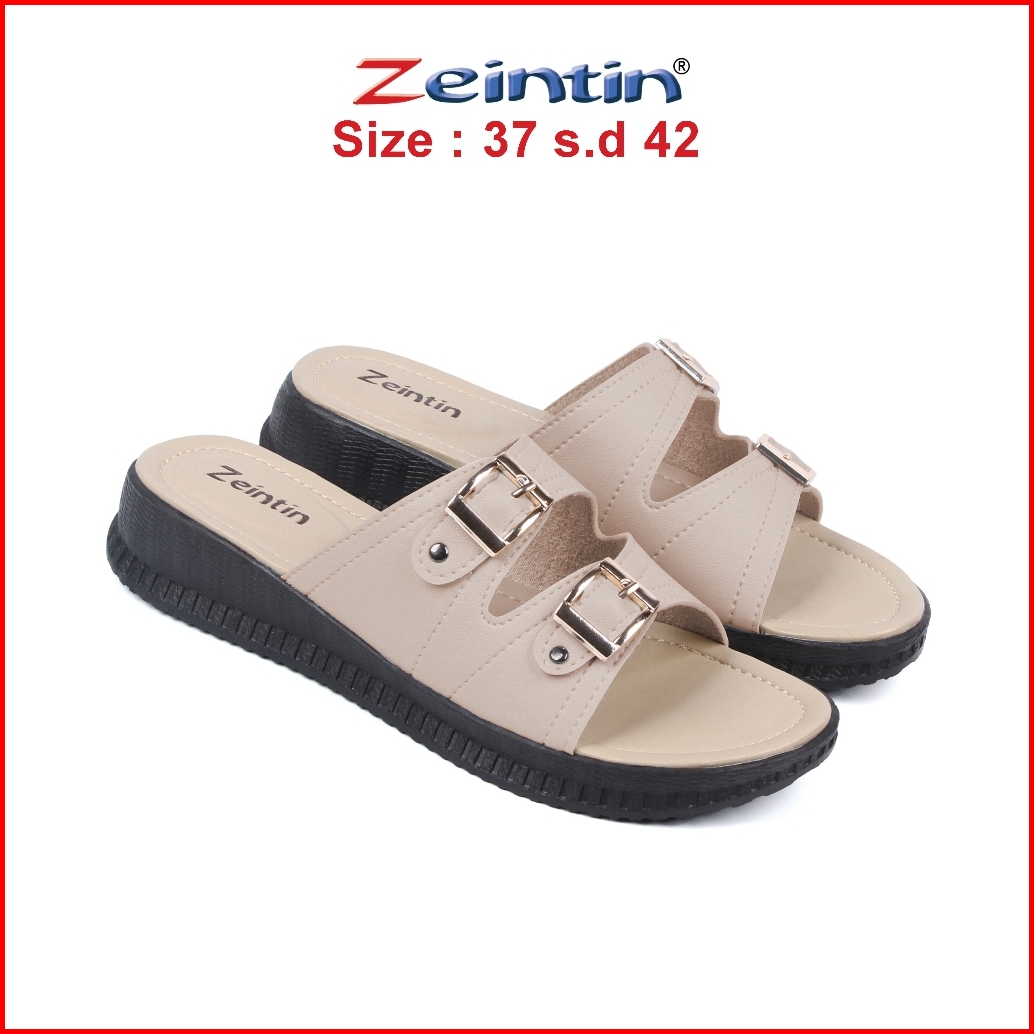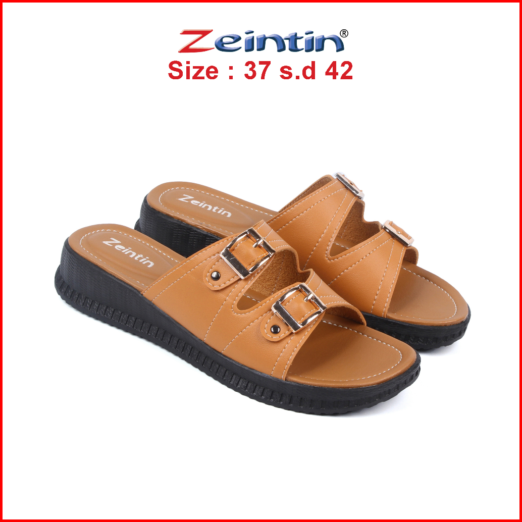 Zeintin - Sandal Wanita Kulit Sintetis Hitam Sandal Selop Wedges Wanita Hp