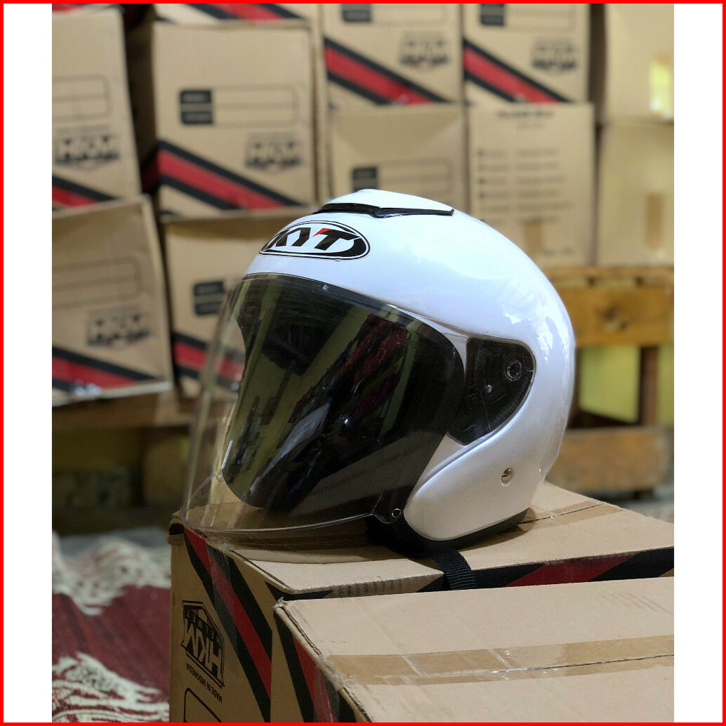 Helm Kyt Kyoto Dewasa Mirip Original Visor Flat Pria Wanita Ori Helm Hkm White Solid Busa Tebal Bisa Dilepas Dicuci Suda