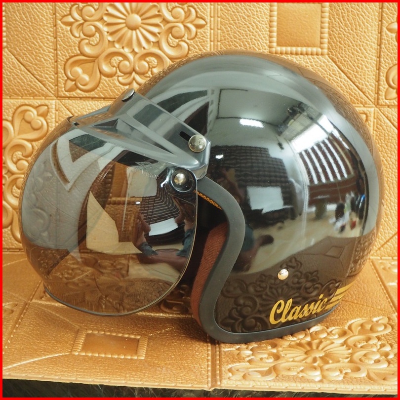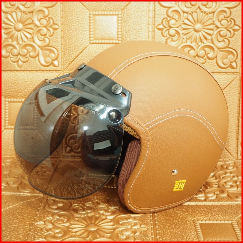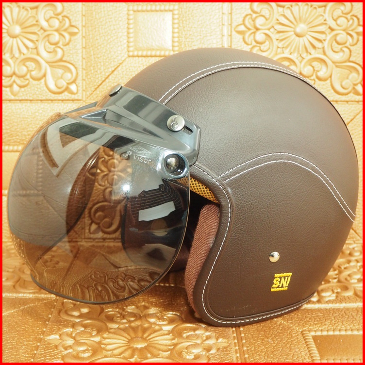 Helm Bogo Kulit Classic Sni Dewasa Pria Dan Wanita Helmet Boggo Retro Klasik Leather Sintetis Kaca Datar Cembung Warna F