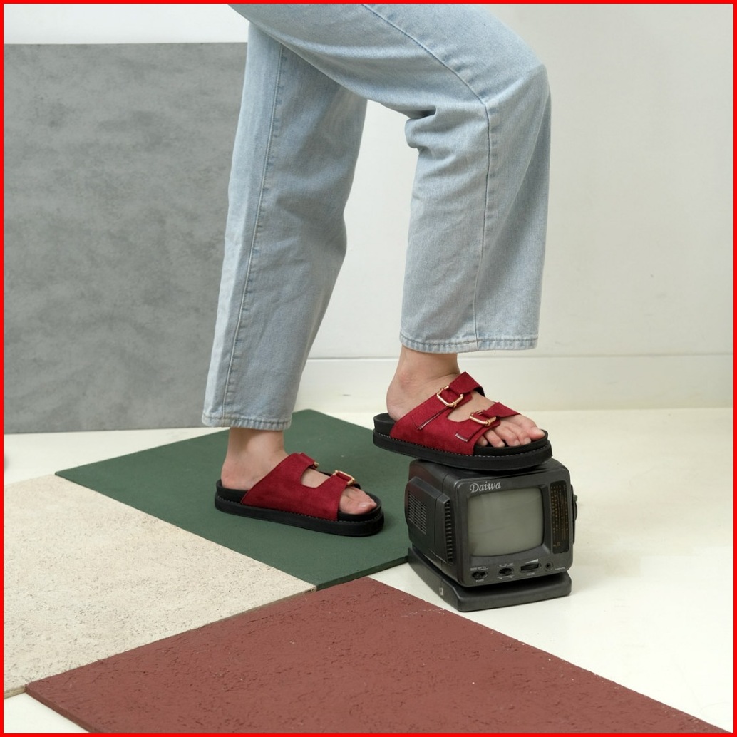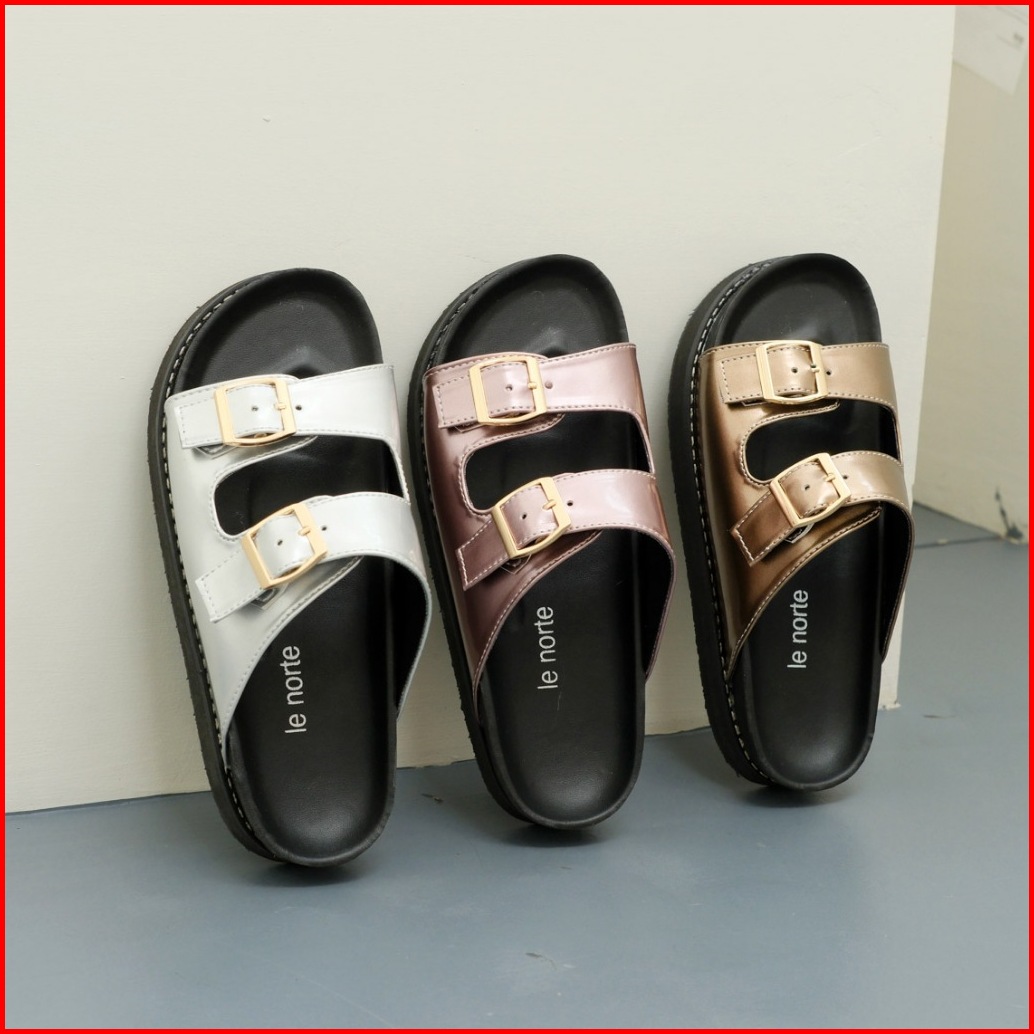 Anjo Classic Sole Le Norte Sandal Slide Tali Footbed Wanita Sandal Platform Flatform Wedges Wanita