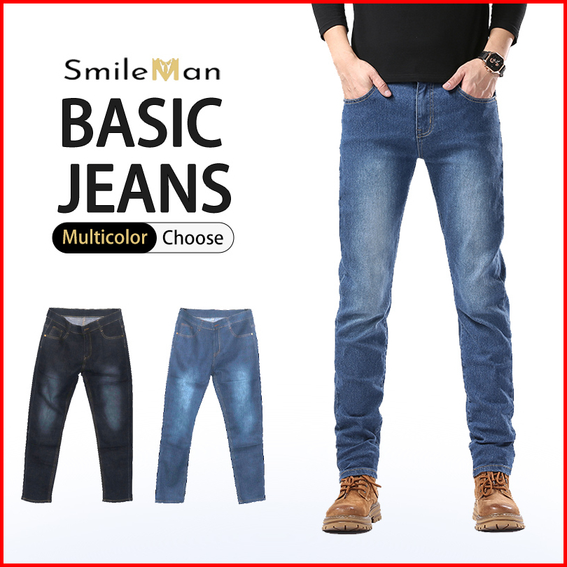 Smileman Celana Panjang Jeans Pria Standar Regular Denim Jeans Tahun 2024 Warna Hitam Dan Biru Big Size 28-36 Kode026
