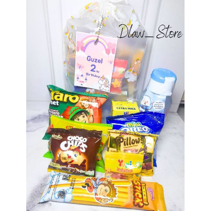 25 Paket Snack Ulang Tahun Botol Free Card Souvenir Ulang Tahun Kemasan Pouch Bingkisan Lebaran