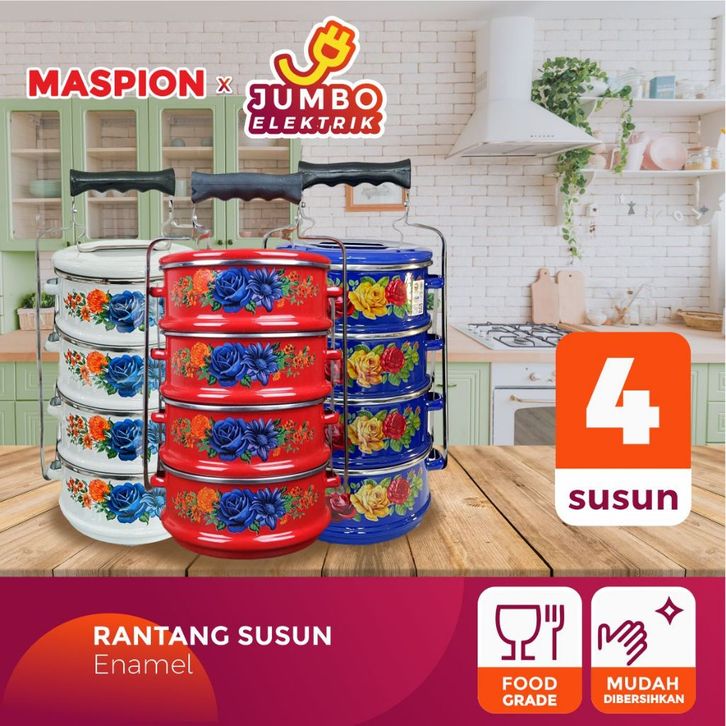 Rantang Susun Stainless Enamel Kedaung Rantang 4 Susun 14 cm TANPA DP