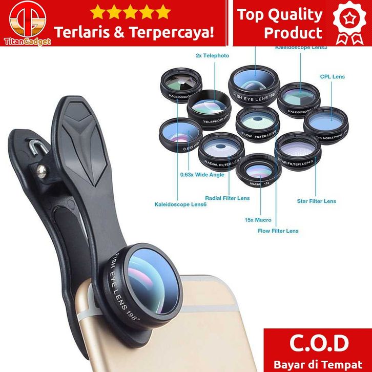 TERLARISSSSSS Lensa Kamera HP Fotografi 10 in 1 Fisheye+Macro+Wide+Tele+CPL+Kale+Filter APL-DG10 TItanGadget