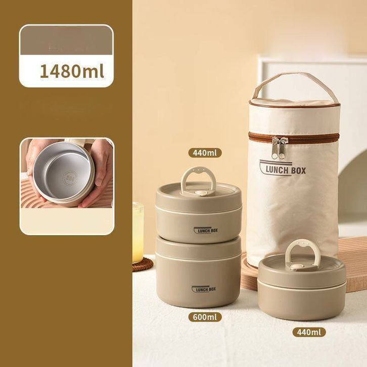 Kotak Makan Portable Tahan Panas / Container Sealed Round Stainless Lunch Box Tahan Bocor / kotak makan 1 set premium
